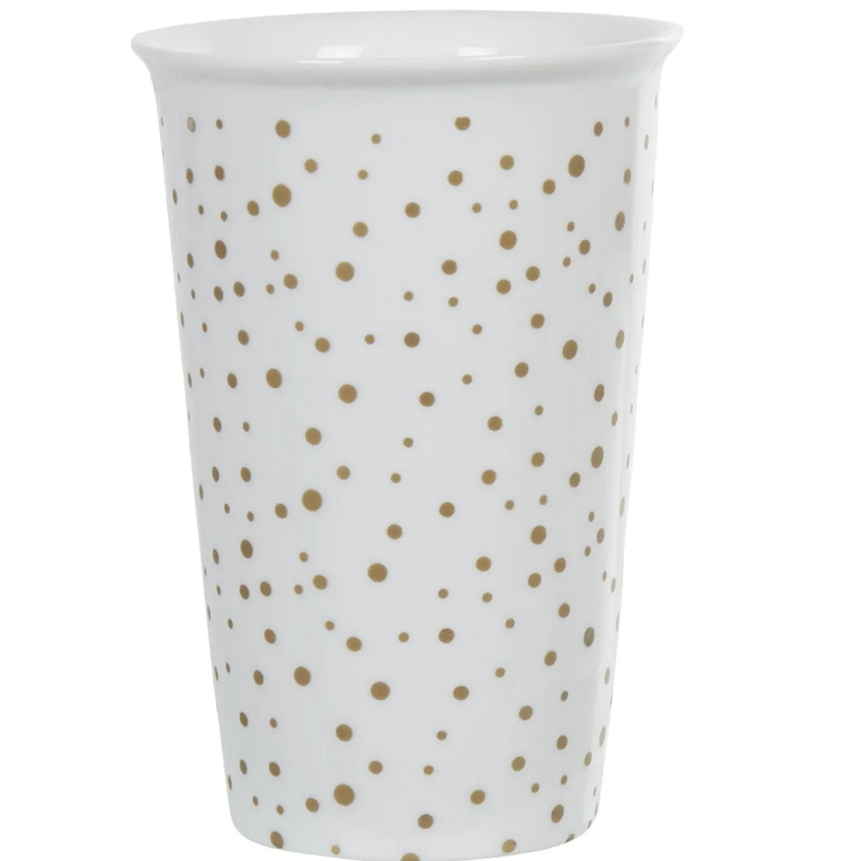Si vous manquez de temps le matin, ce mug de transport blanc aux pois dorés est fait pour vous. Avec son design sympathique et épuré, il sera très pratique pour déguster votre café ou votre chocolat chaud dans les transports en commun ou dans votre voiture. Refermez-le facilement et n’ayez pas peur des fuite grâce à son couvercle en silicone qui épousera parfaitement la forme du gobelet. Pensez-y aussi lors d’un pique-nique, d’une longue réunion ou d’une sortie à vélo.