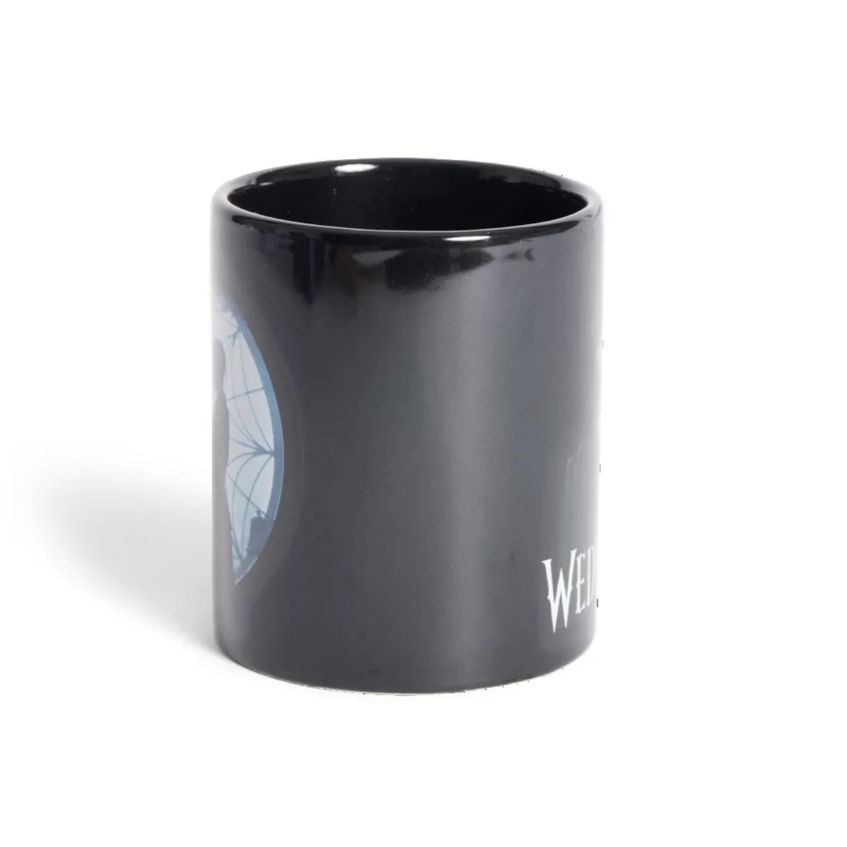 Savourez votre café avec une touche de mystère grâce à ce mug noir orné de l’inscription « Wednesday » et d’une sérigraphie du personnage emblématique Mercredi Addams.