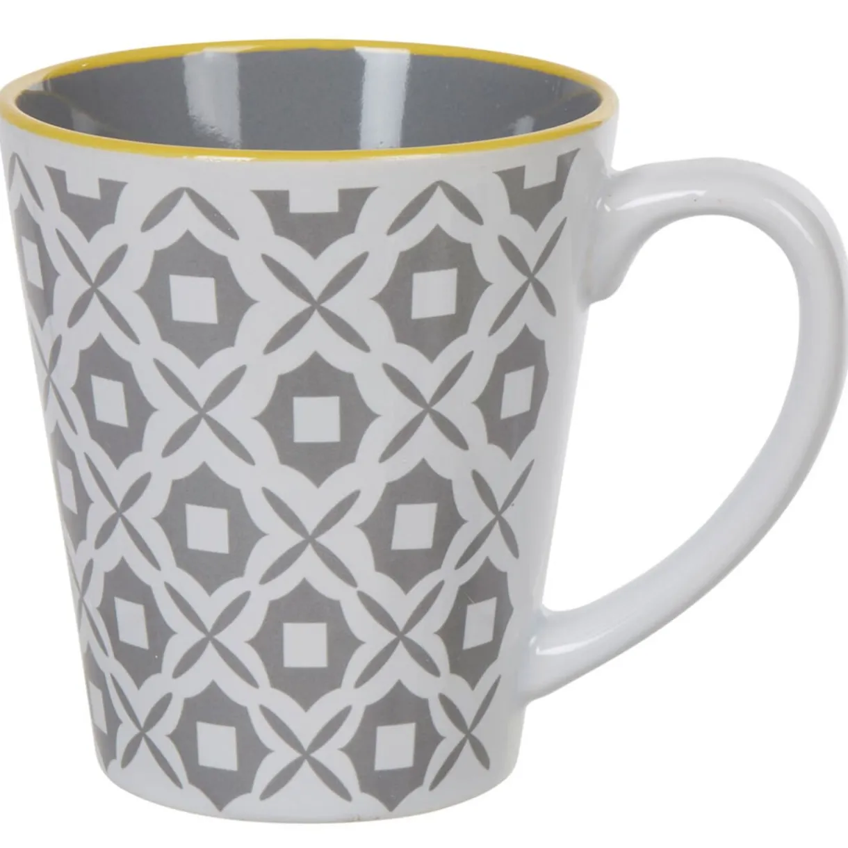 Prenez plaisir à boire vos boissons chaudes avec ce mug motifs géométriques gris et blancs.