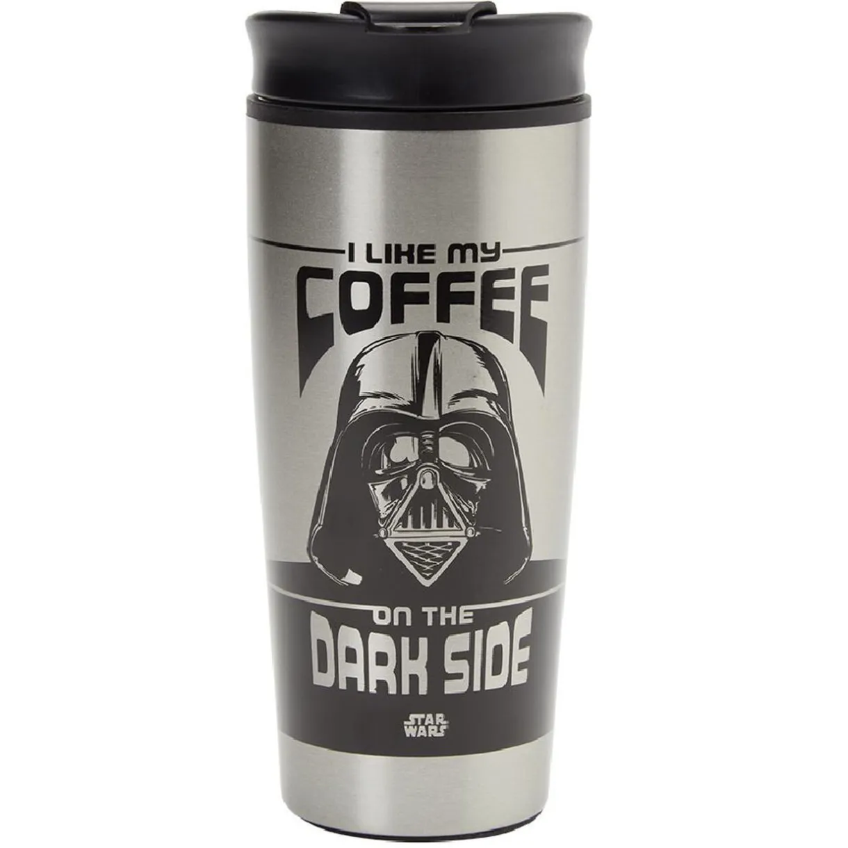 Mug de voyage en acier motif Dark Vador, idéal pour transporter vos liquides chauds en toute sécurité et pour longtemps.