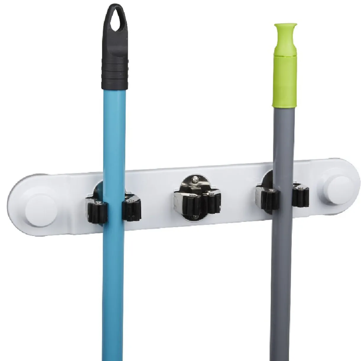Rangez jusqu’à 3 balais sur cette accroche blanche à ventouses resserrables.