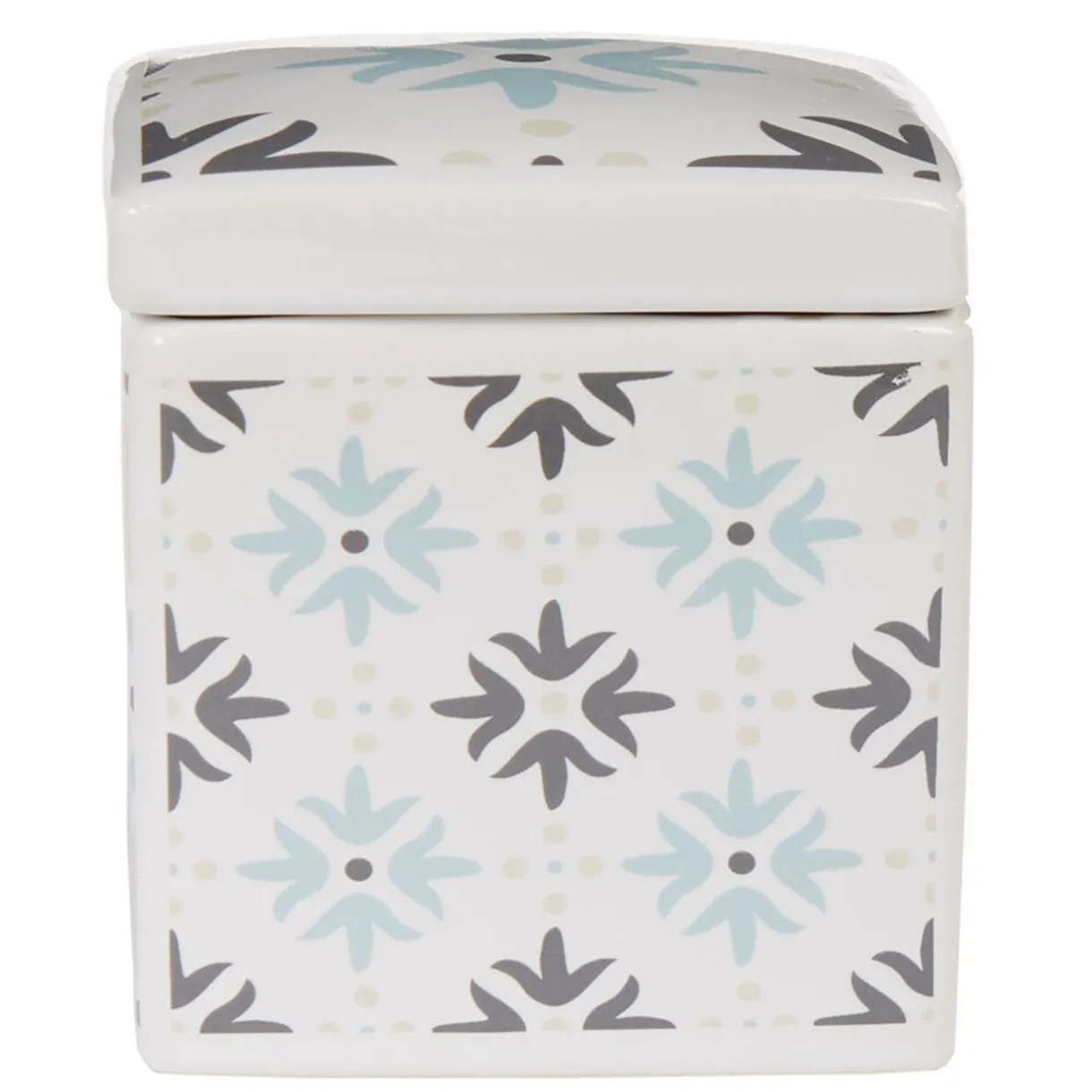 Poubelle à coton pour la salle de bain en céramique blanc design carreau de ciment beige/bleu/gris.