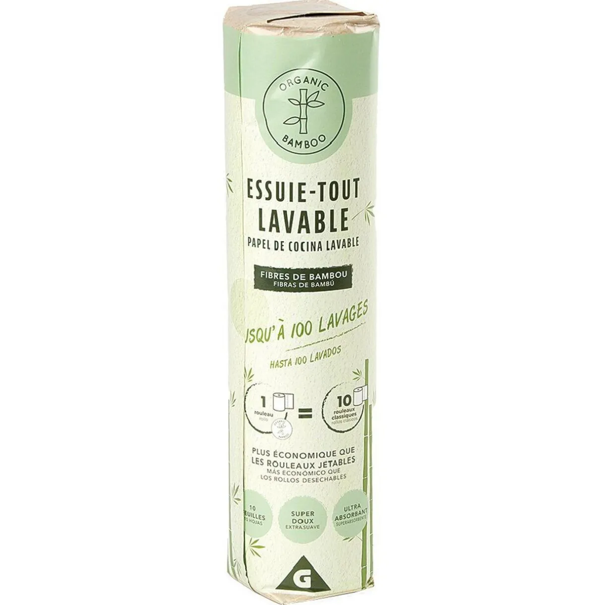 Essuie tout lavable en fibres de bambou composé de 10 feuilles douces et ultra-absorbantes.