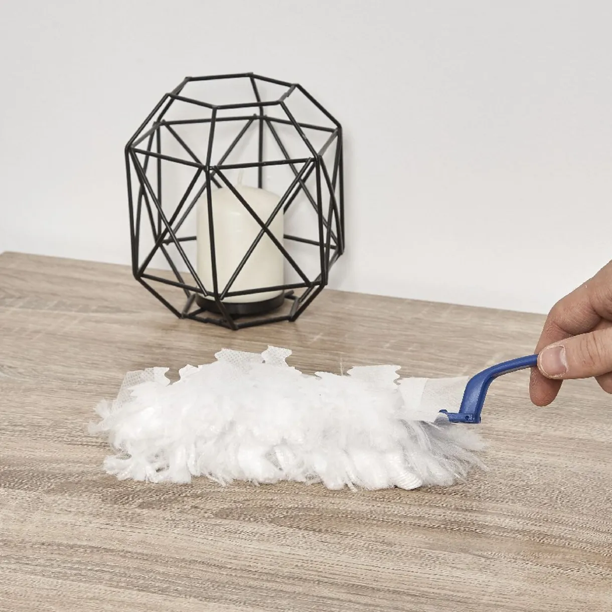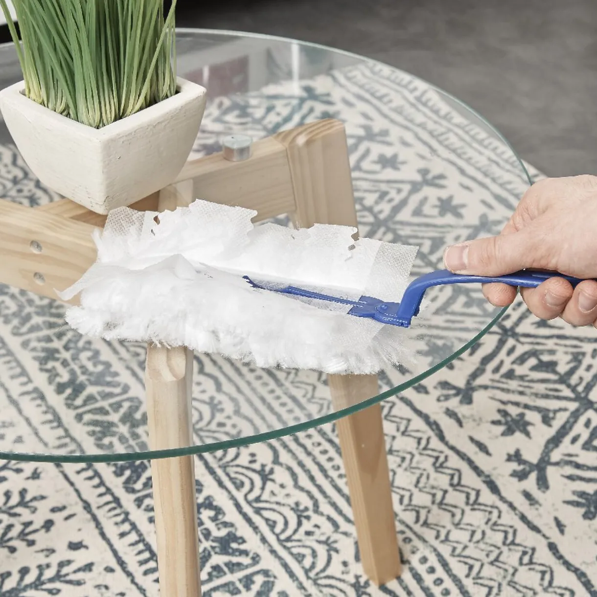 Kit de dépoussiérage comprenant un plumeau en plastique sur lequel vous fixez les recharges jetables.