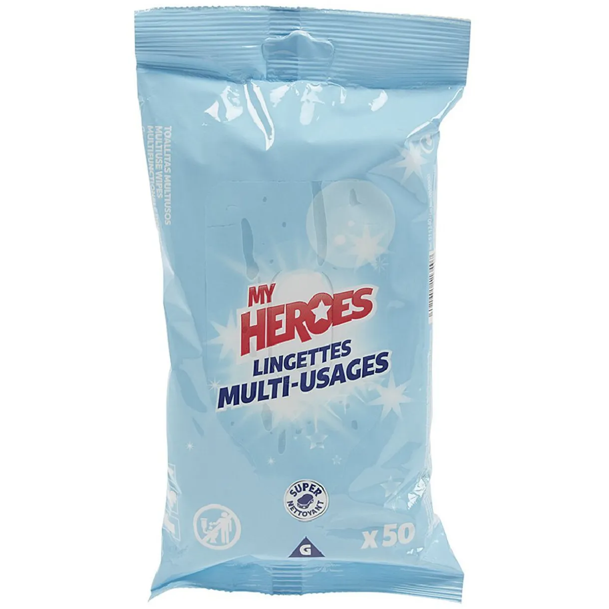 Paquet de 50 lingettes nettoyantes multi-usages pour toute surfaces. Pour une maison propre et saine en un tour de main.