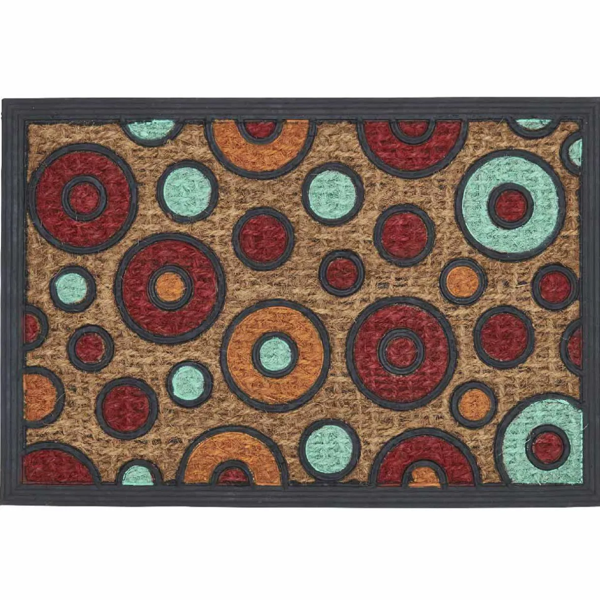 Ce tapis en fibre de coco à motifs ronds multicolores sera parfait pour l’entrée. Robuste et esthétique, idéal pour retenir le maximum de saletés à l’extérieur .
