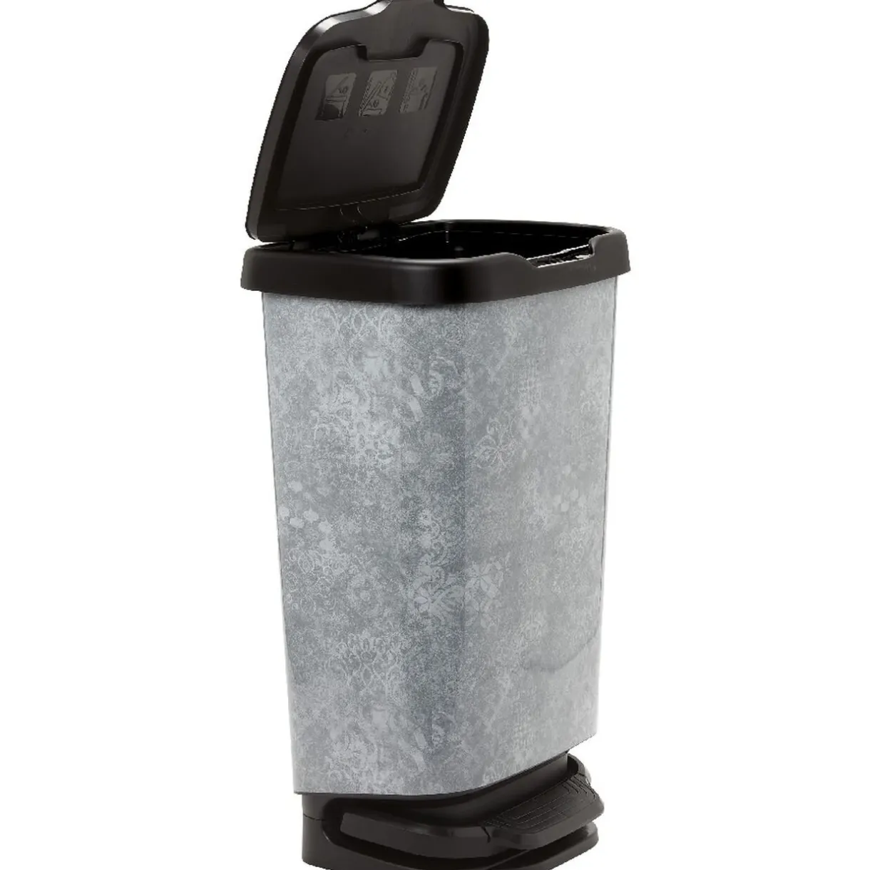 Alliez l’utile à l’agréable en habillant joliment votre cuisine avec cette originale poubelle design mosaïque grise avec couvercle et pédale noirs, d’une contanance de 40 litres.