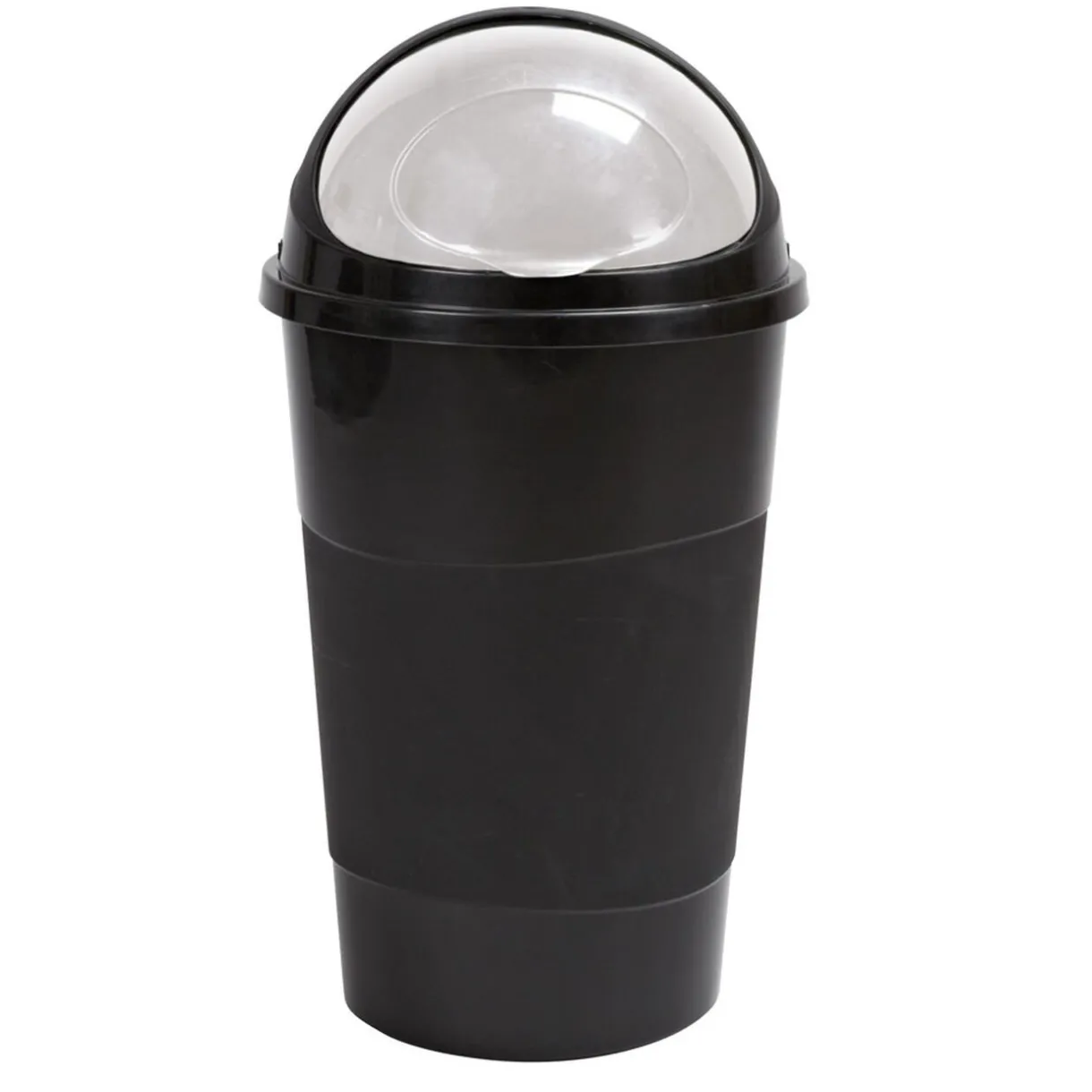 Poubelle à rabat noire 50 L, h. 76 cm, plastique.