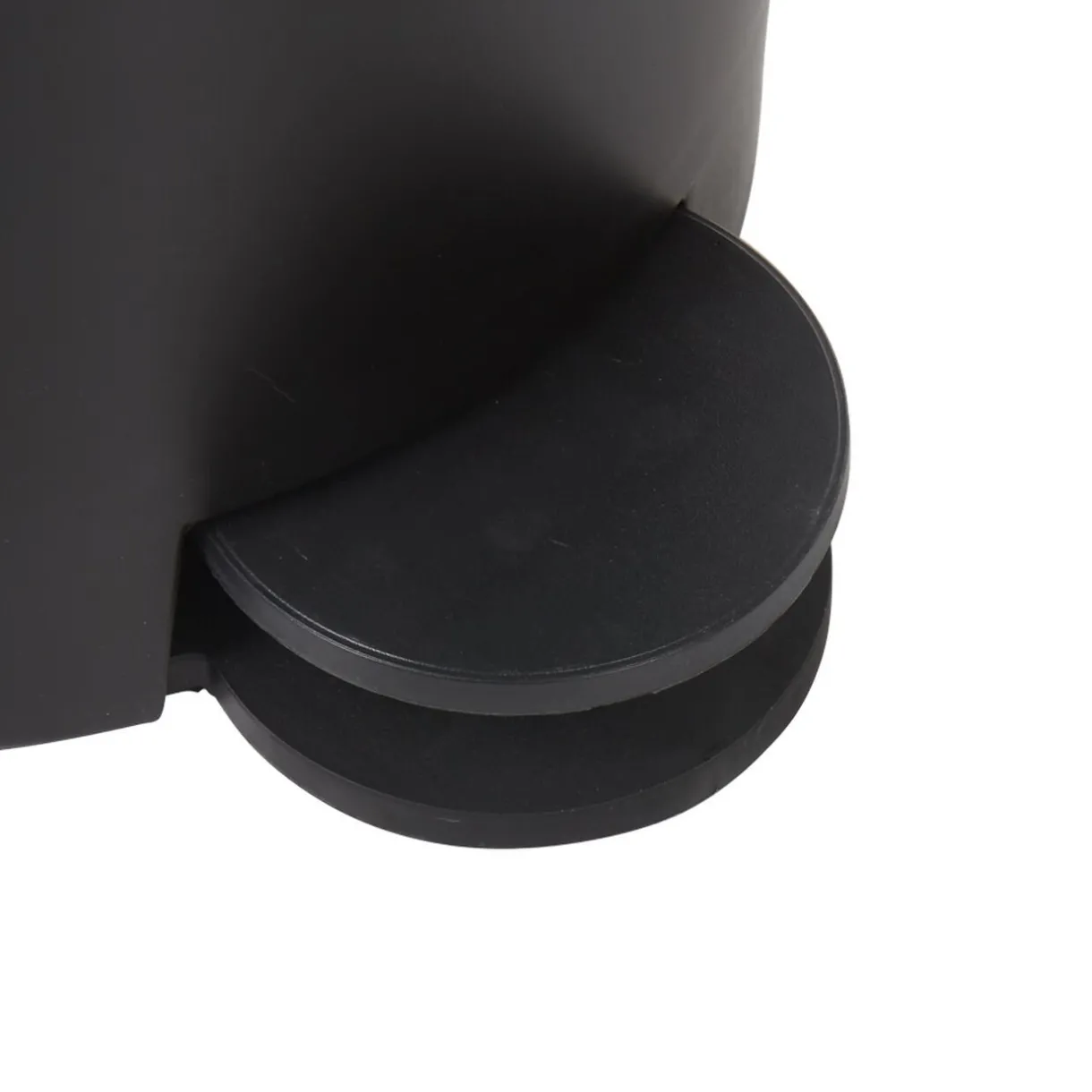 Petite poubelle de salle de bain ronde avec pédale pour ouverture du couvercle.