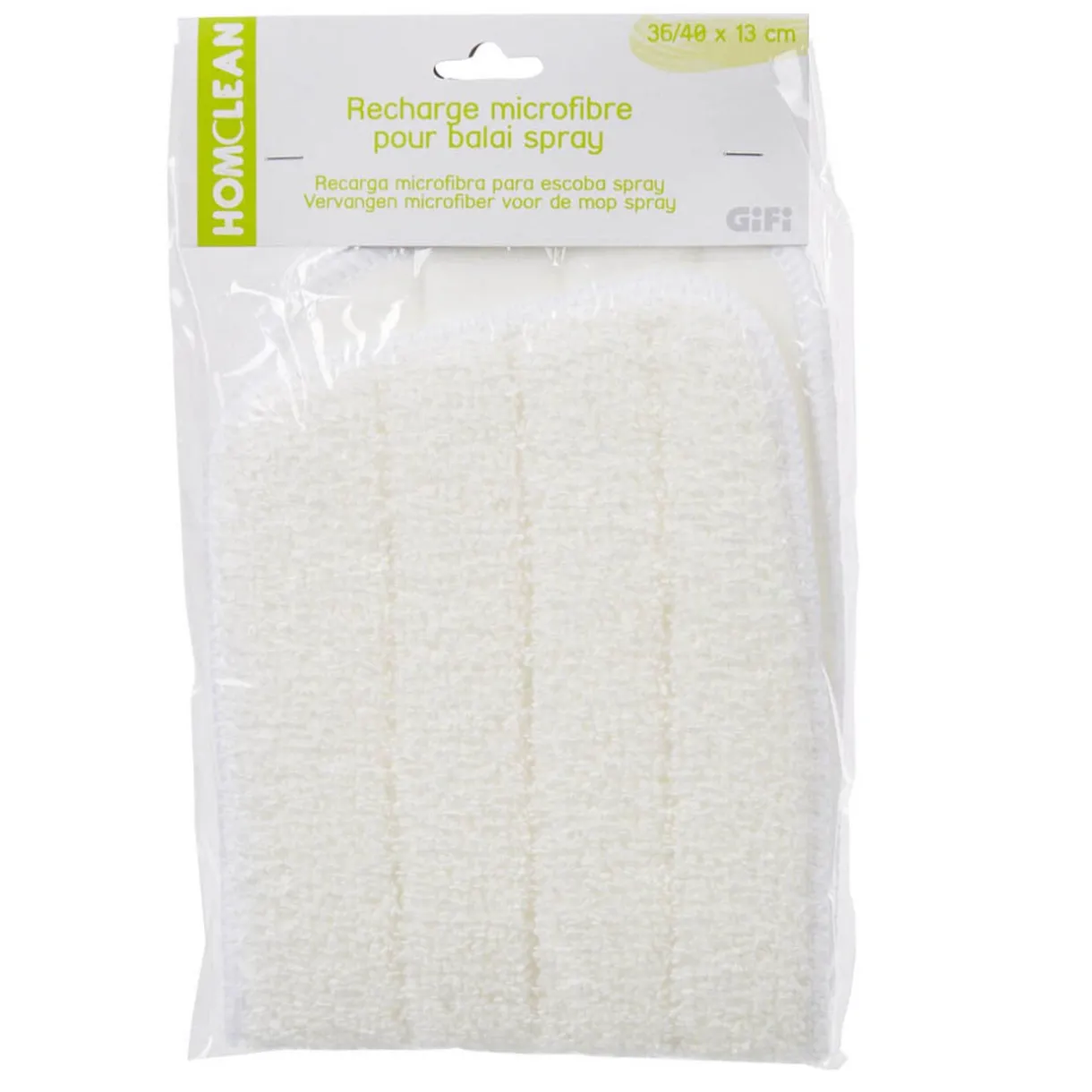 Recharge microfibre réutilisable et lavable en machine pour le balai spray avec réservoir intégré disponible sous la référence 408231. Nettoyez facilement et efficacement avec cette recharge à fixer sur votre balai.