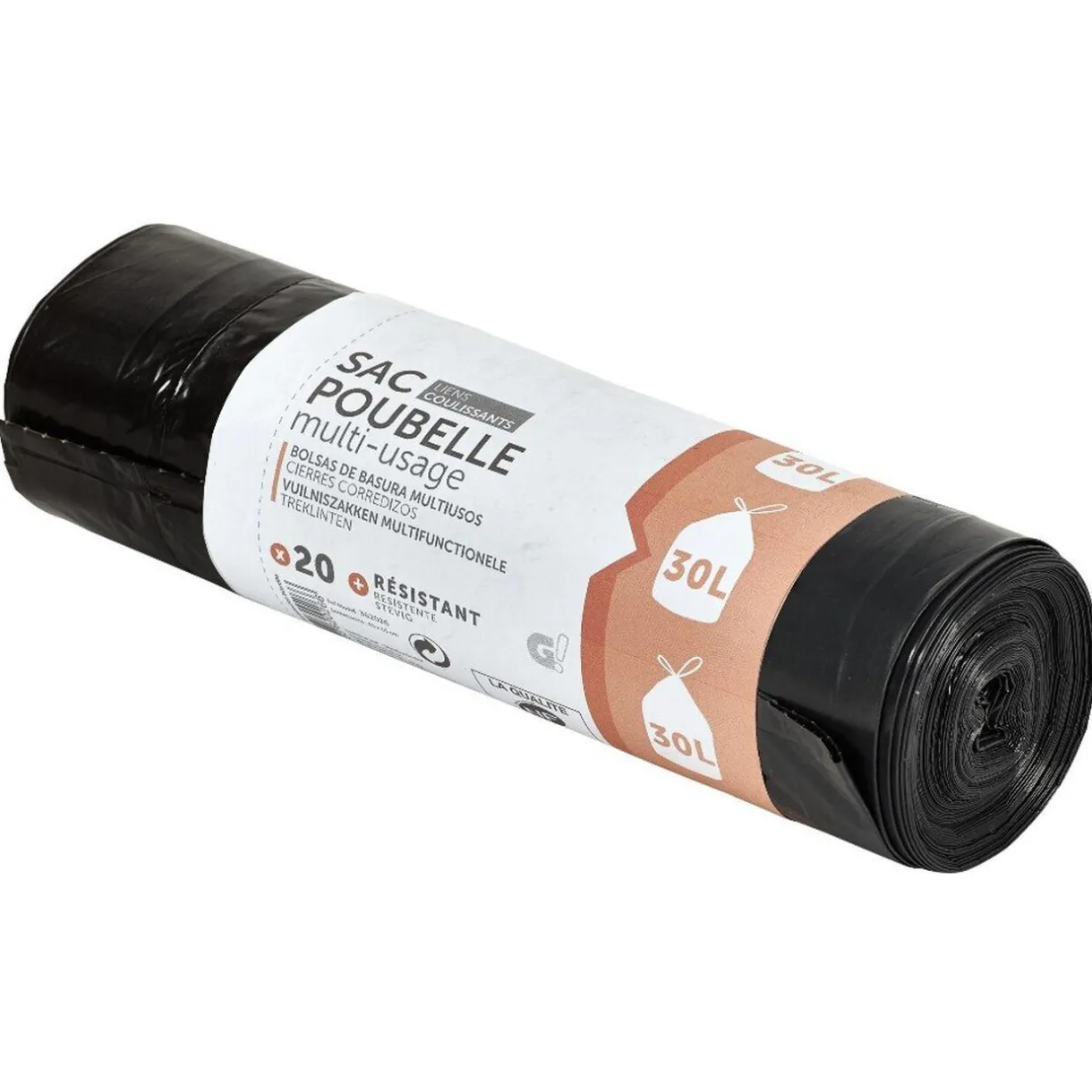 Lot de 20 sacs poubelle triple épaisseur de 30 l avec anses.