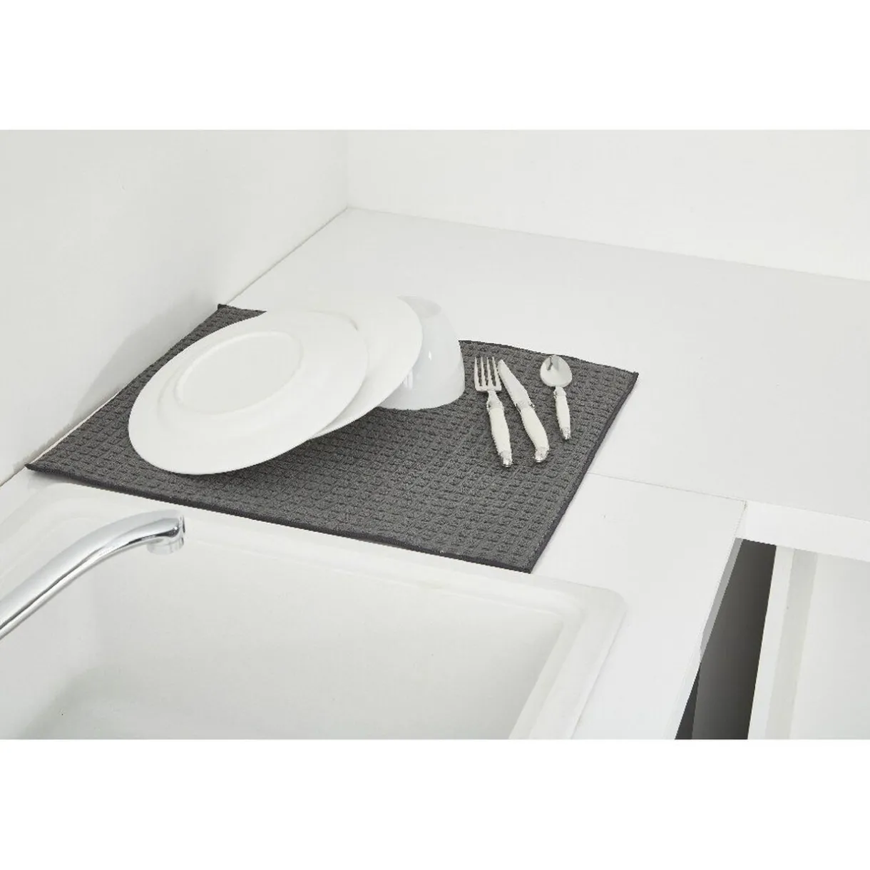 Tapis éponge pour évier en microfibre de couleur gris.