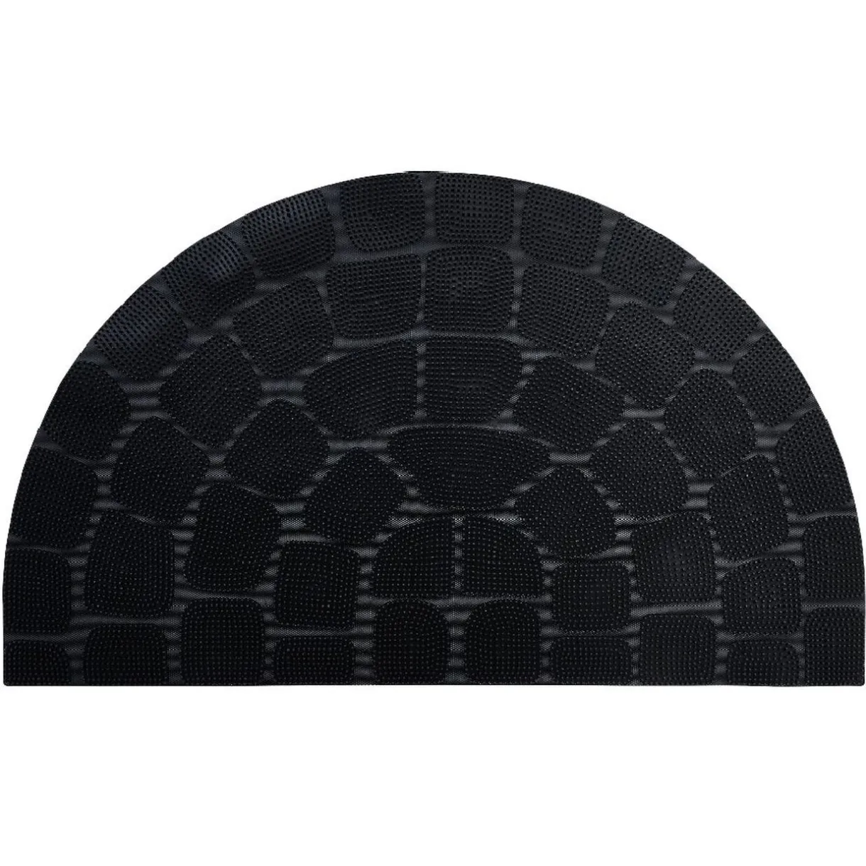 Tapis d’extérieur en forme de demi lune en caoutchouc noir avec base antidérapante et dessus grattant. Idéal pour garder une entrée propre et soignée!
