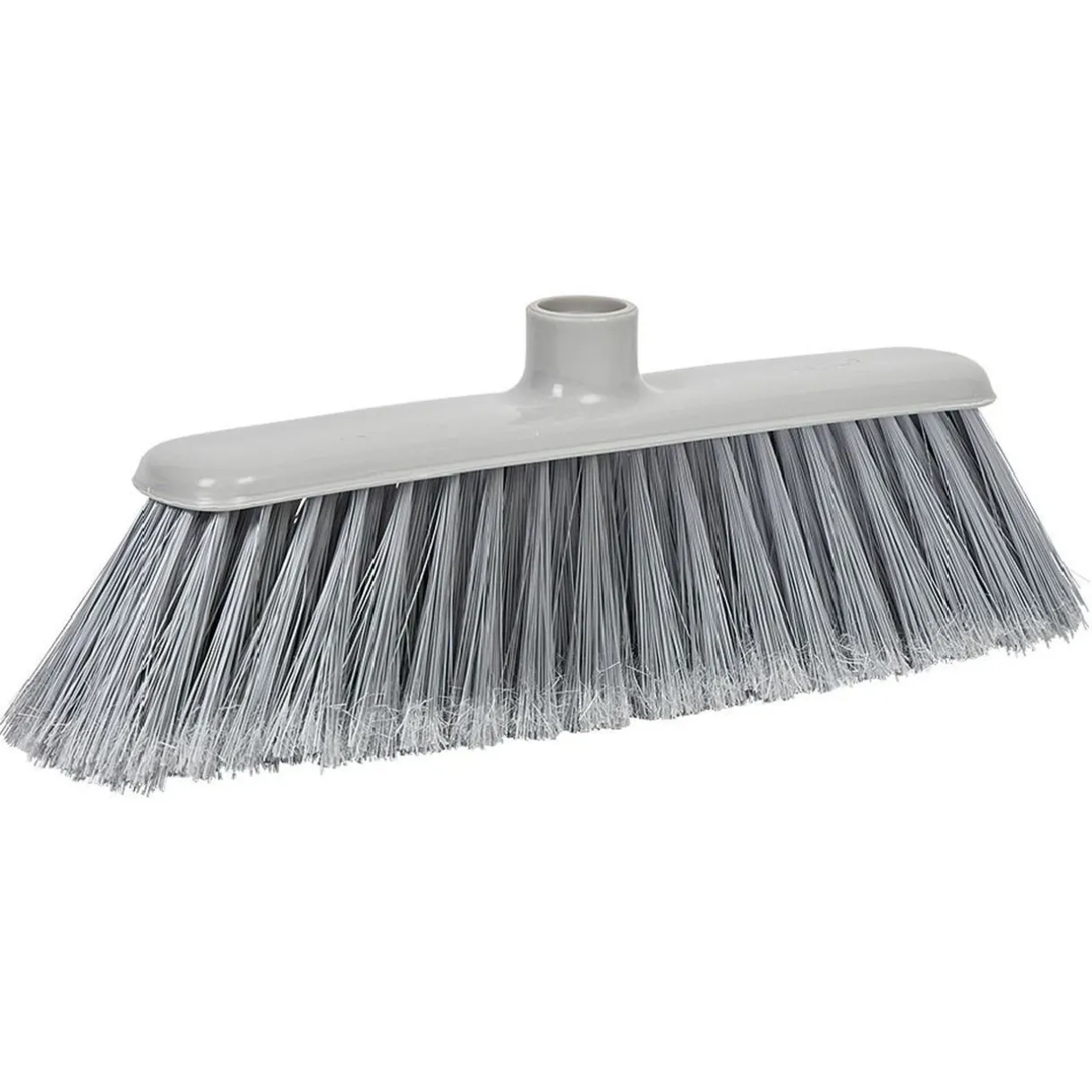 Cette tête de balai droit en vinyle gris répondra à vos besoins en balayant efficacement poussières et saletés.