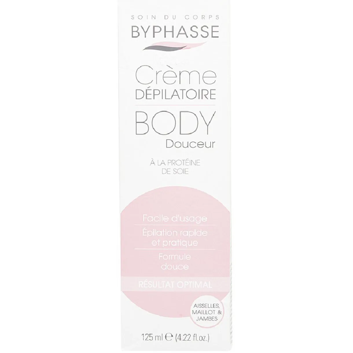 Une épilation rapide, efficace, et indolore : voici ce que vous propose la crème Dépilatoire Byphasse. Grâce aux extraits de protéine de soie, le produit élimine les poils en douceur et n’agresse pas la peau, même les plus sensibles. Utilisable sur les jambes, les aisselles et le maillot.Contenance : 125 ml