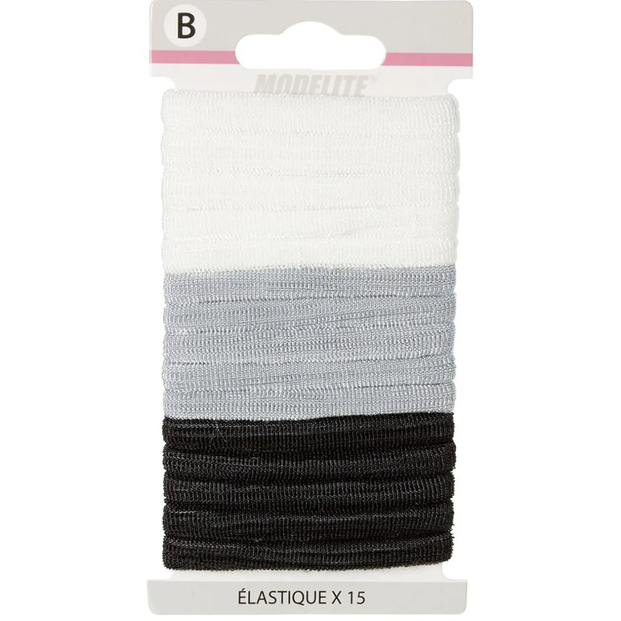Lot de 15 élastiques en mousse de couleur uni blanc, gris et noir.