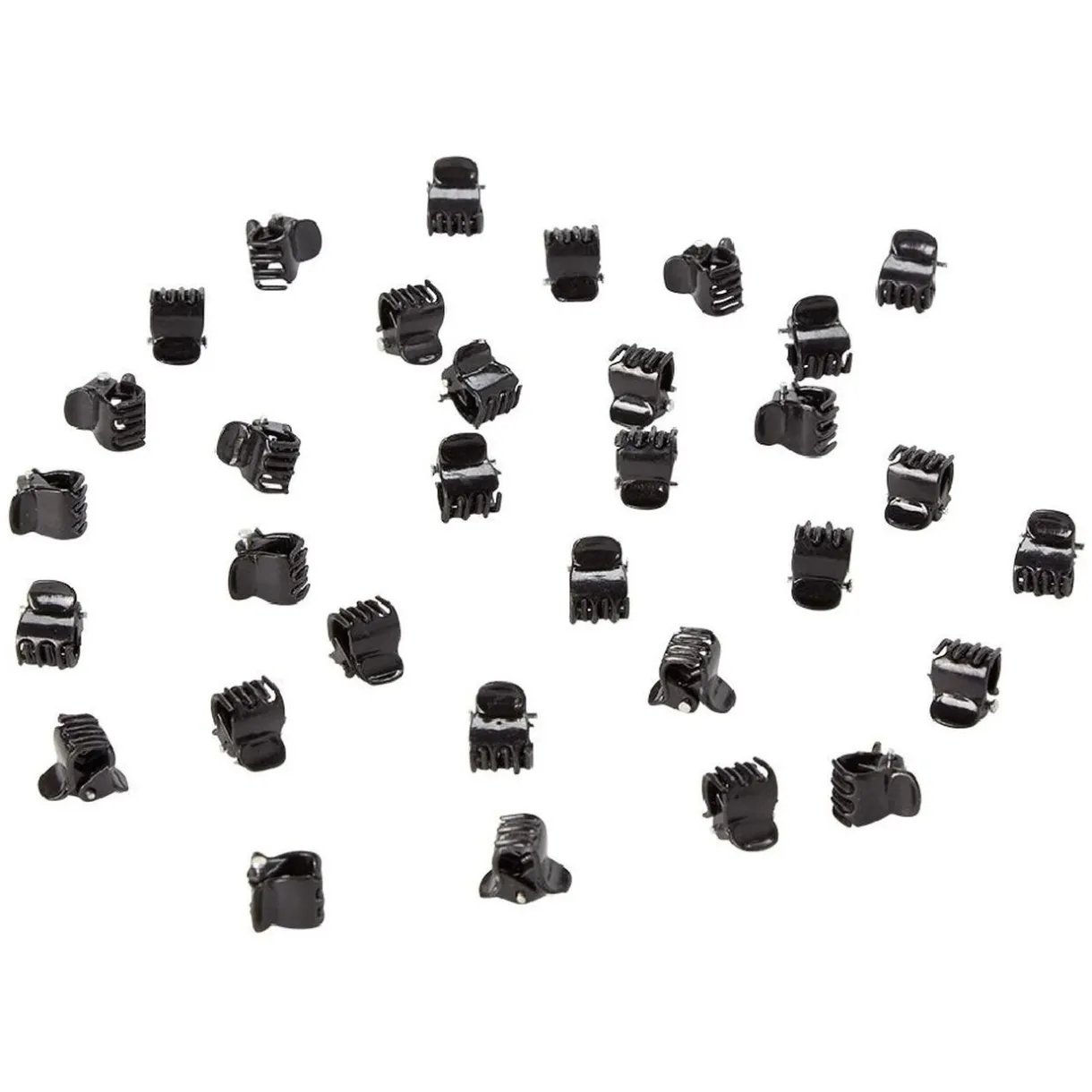 Lot de 32 minis pinces en plastique uni noir. Longueur :1 cm