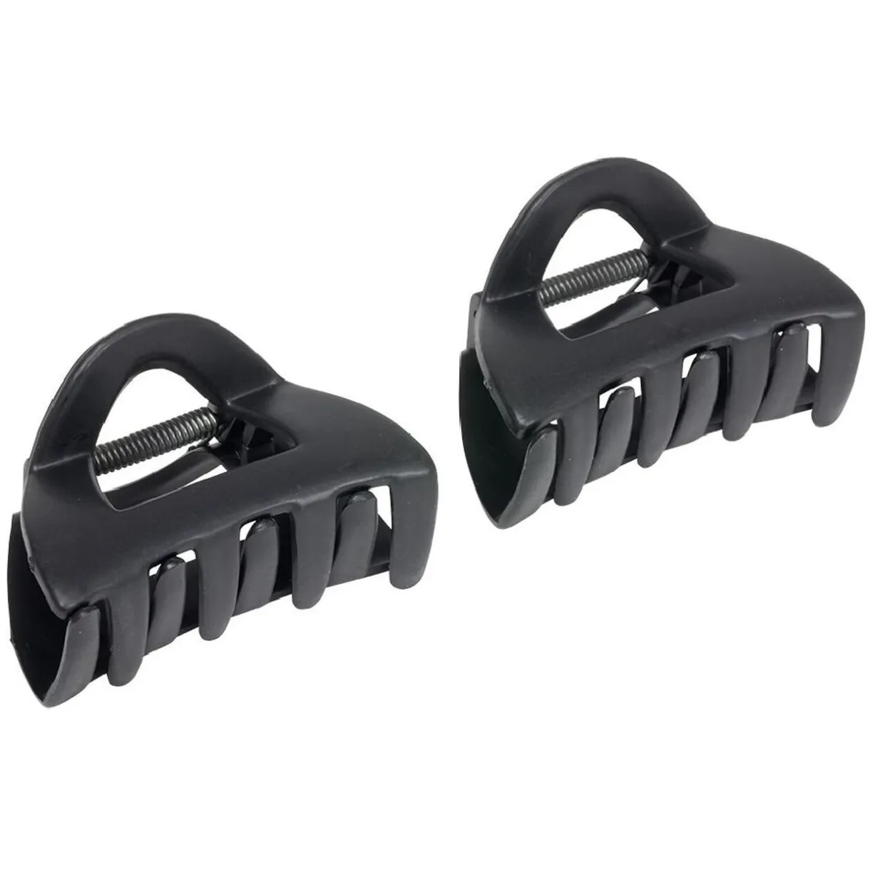 Lot de 2 pinces crabes (L.5,5 cm) en plastique ajouré noir brillant. Parfait pour rassembler une partie ou l’ensemble de vos cheveux avec style!