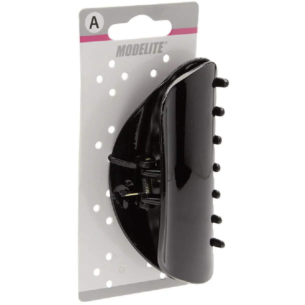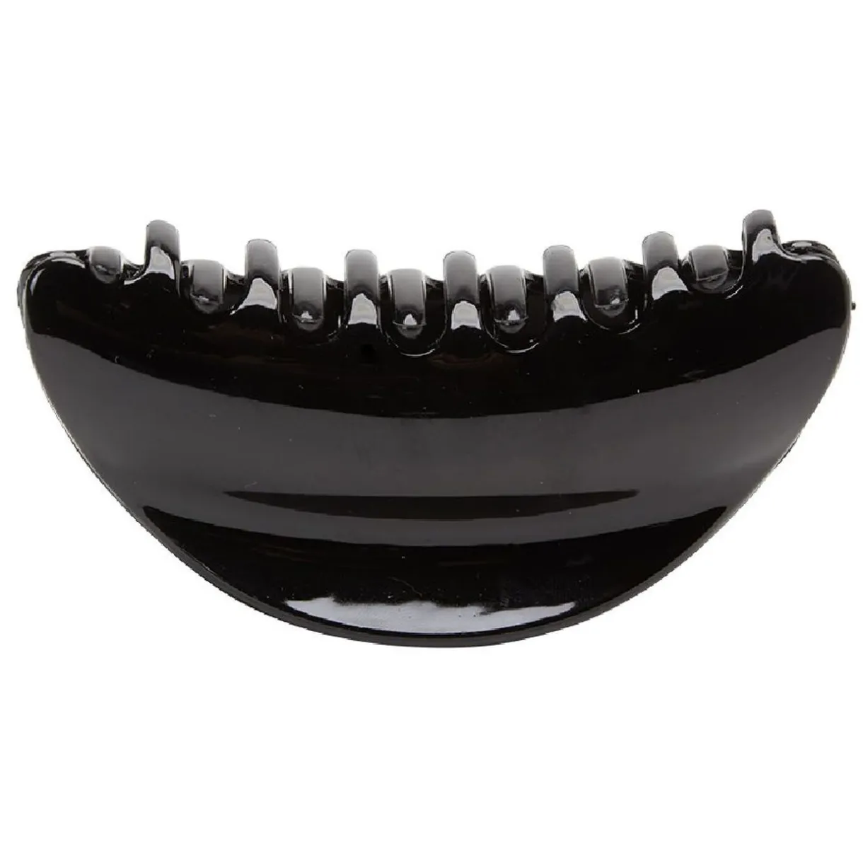 Pince crocodile en plastique uni noir brillant. Longueur : 11 cm