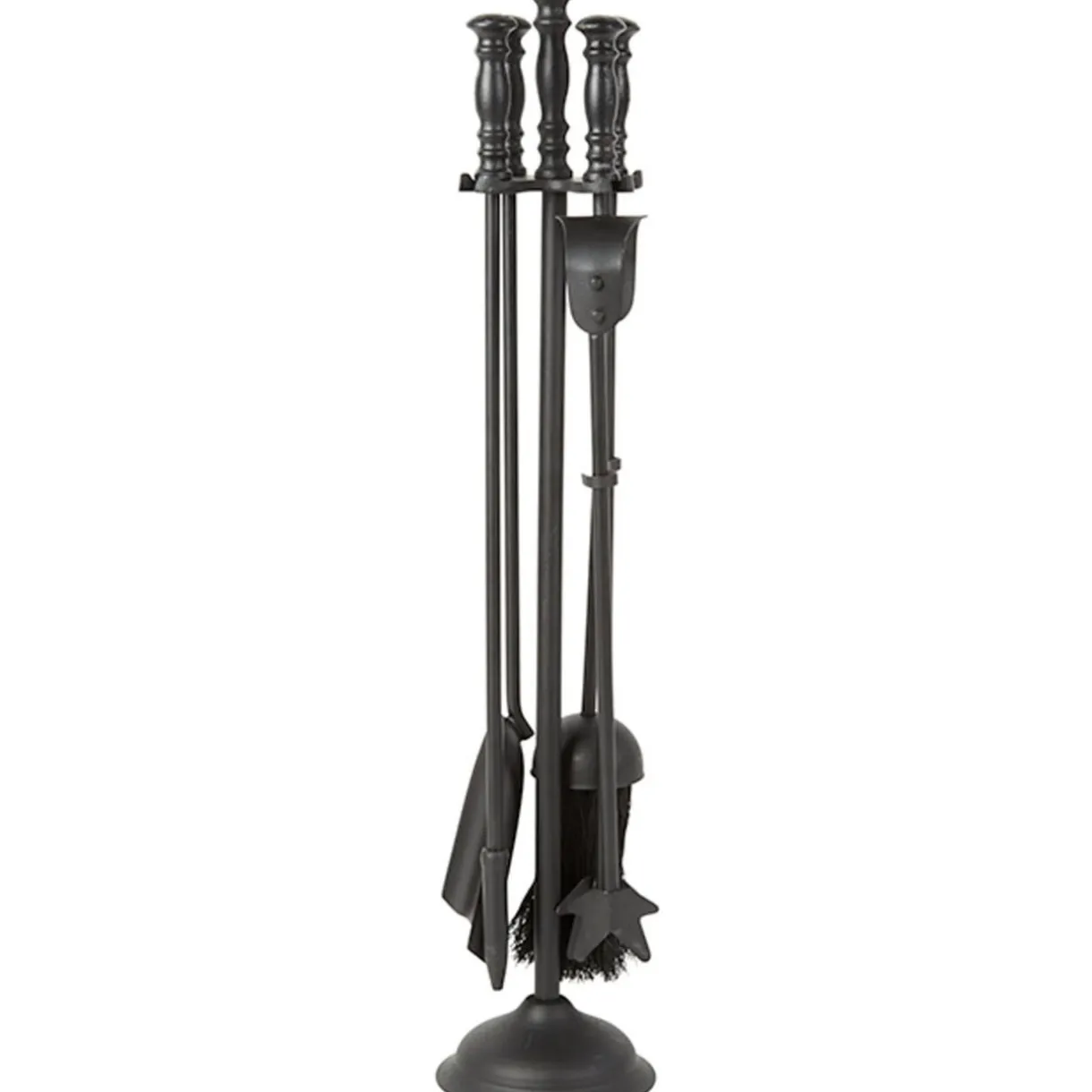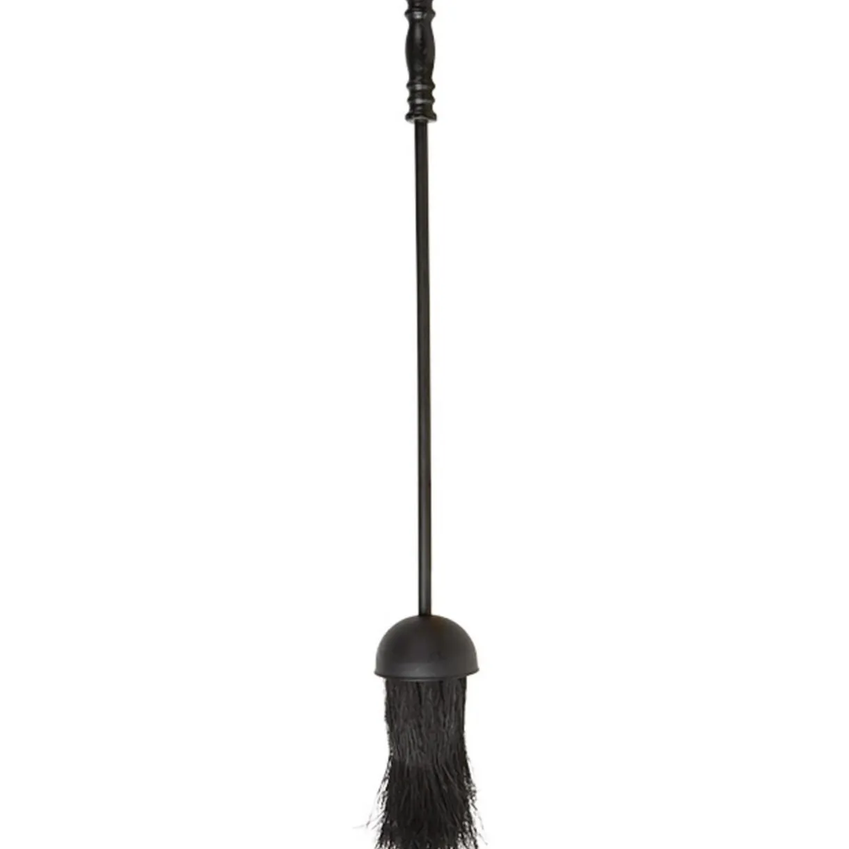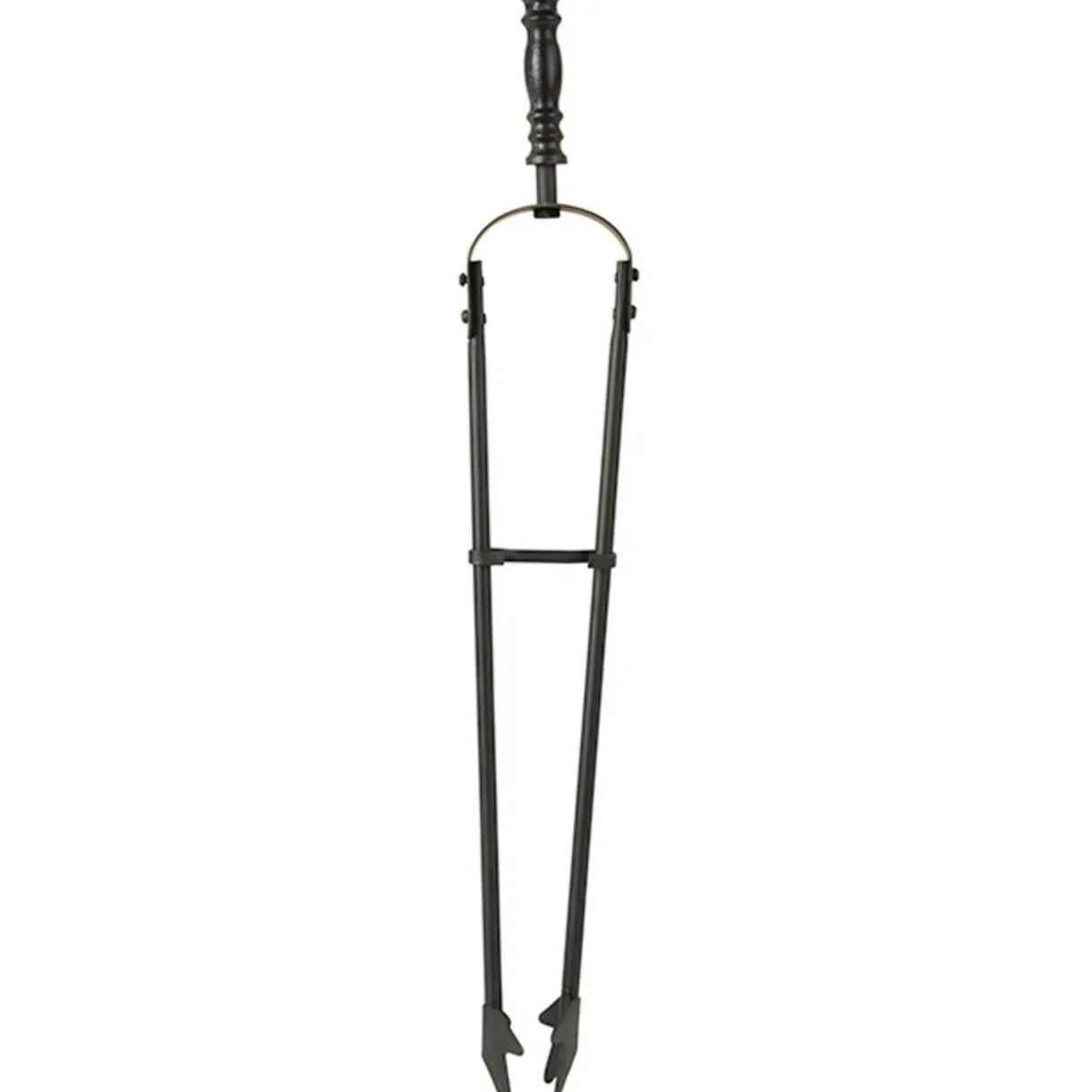 Serviteur de cheminée, h. 55 cm, métal. Comprend : 1 pelle à cendres, 1 balayette, 1 tisonnier et 1 paire de pinces.
