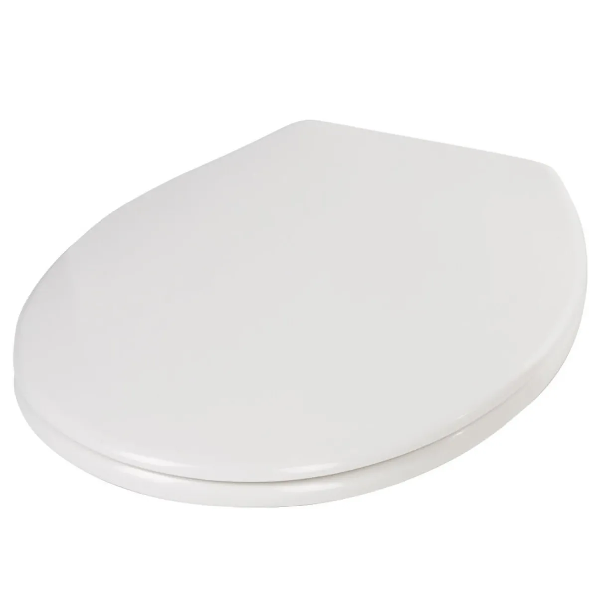 Abattant WC blanc avec frein de chute, ultra résistant grâce à sa matière en plastique dur.