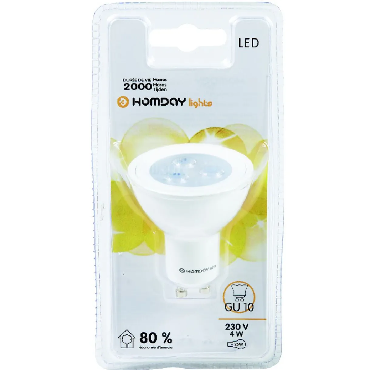 Ampoule LED spot Homday Lights, 80 % d’économie, 4 Watts, culot GU10, dim. 5,5×5 cm…