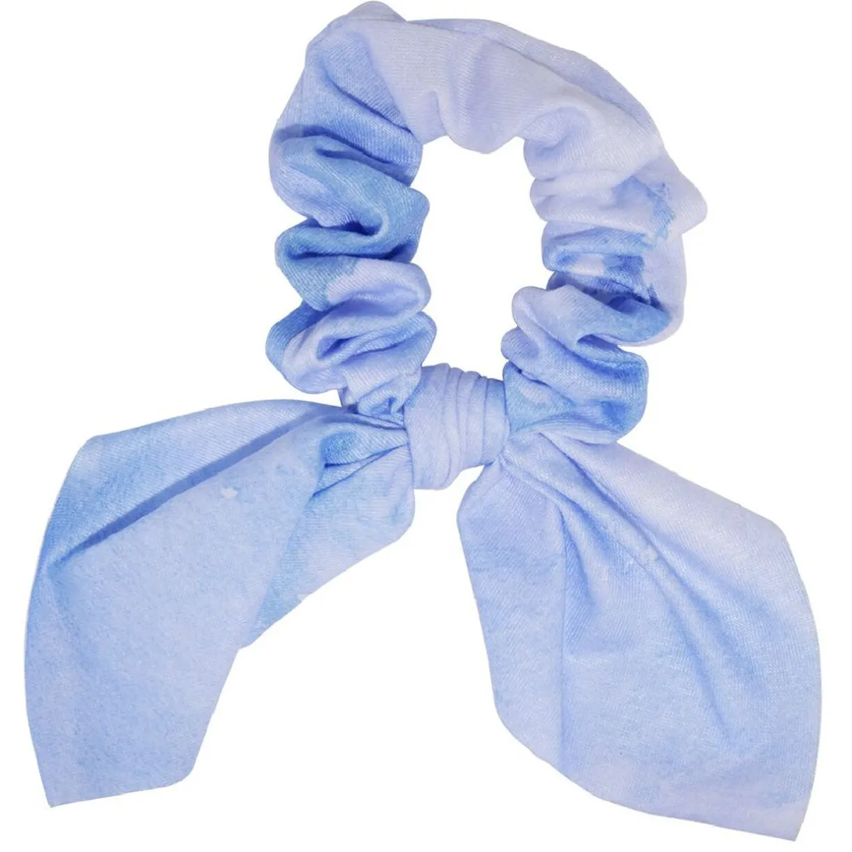 Chouchou bleu effet délavé blanc à ruban court, parfait pour apporter une touche de fantaisie chic à votre coiffure !