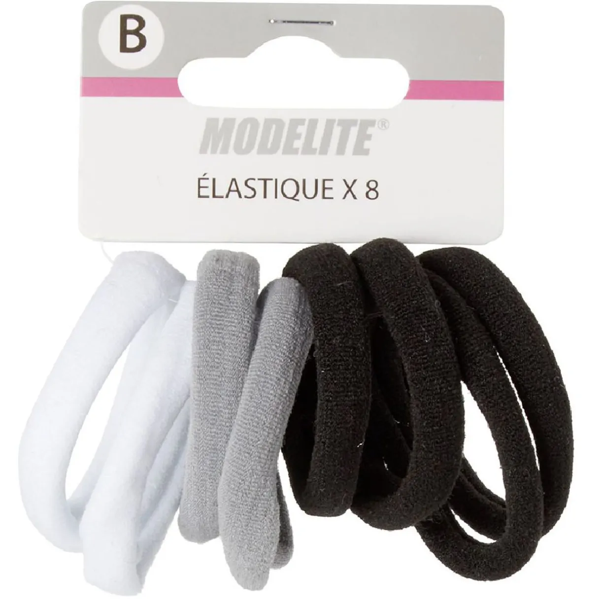 Lot de 6 élastiques en mousse de couleur noir, marron beige clair et beige foncé.