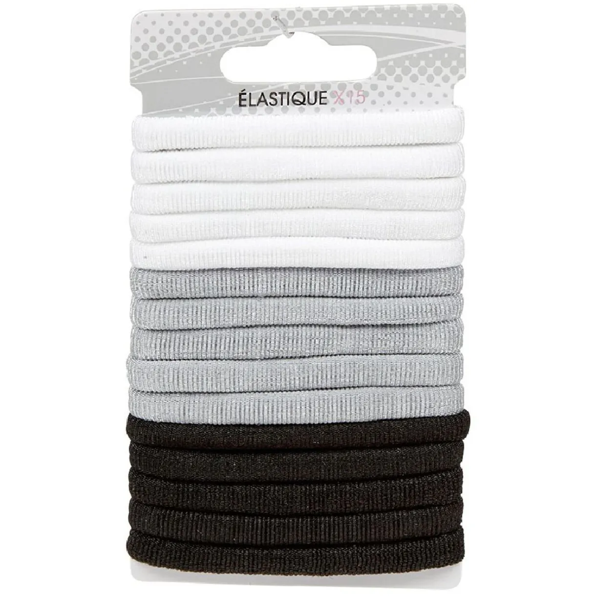 Elastique mousse x15 en plastique noir, blanc et gris.
