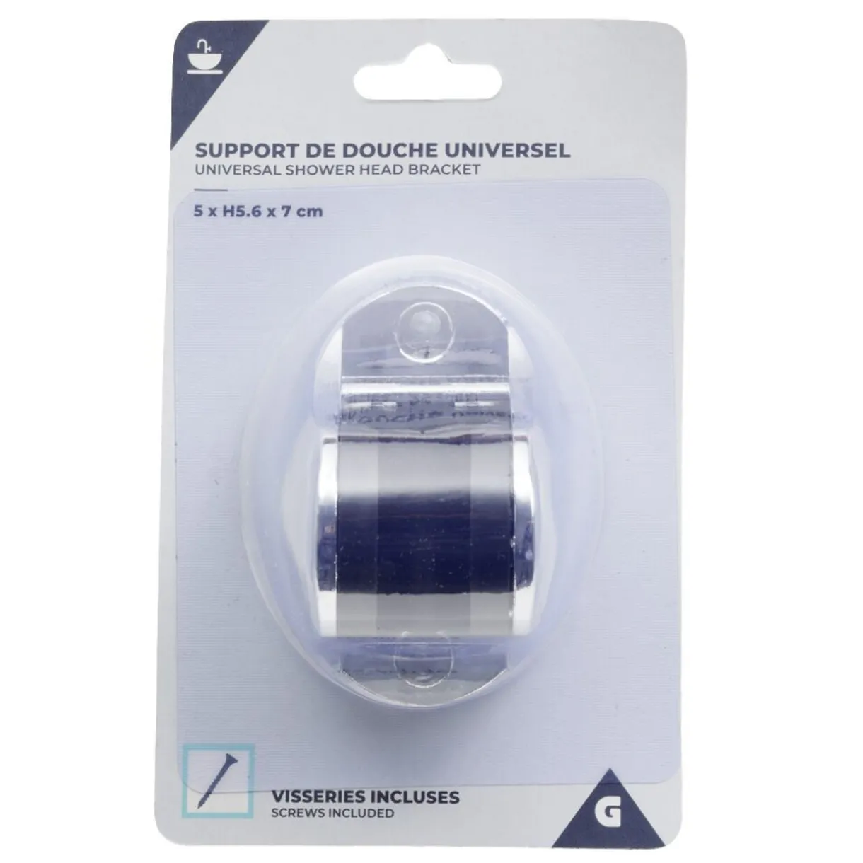 Support de douchette universel avec kit de fixation (visseries incluses).