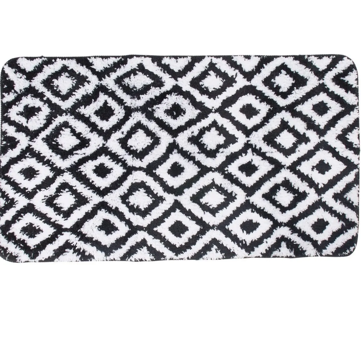 Tapis de salle de bain en microfibre design géométrique noir et blanc.