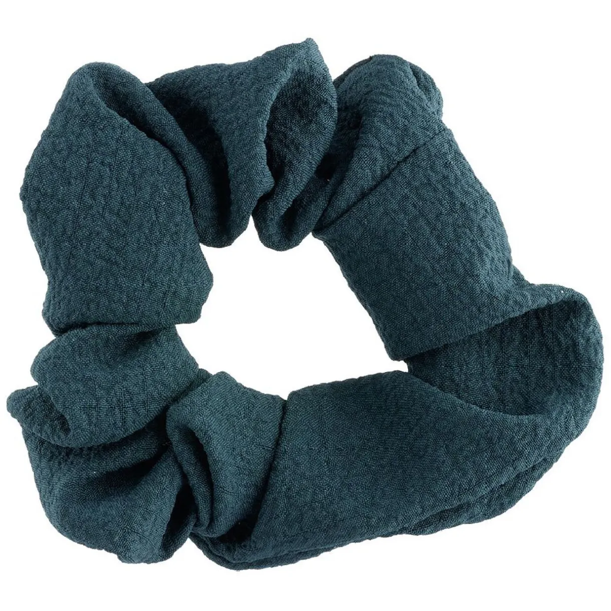 Lot de 3 chouchous en gaze de coton vert clair, vert foncé et rose.