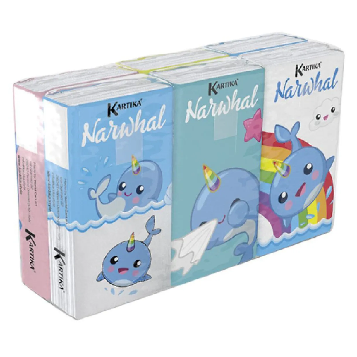 Lot de 6 étuis de mouchoirs en papier imprimé narval à glisser dans son sac.