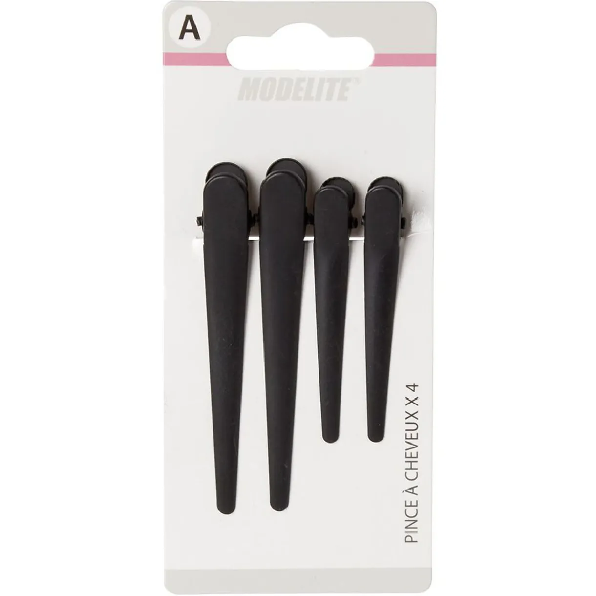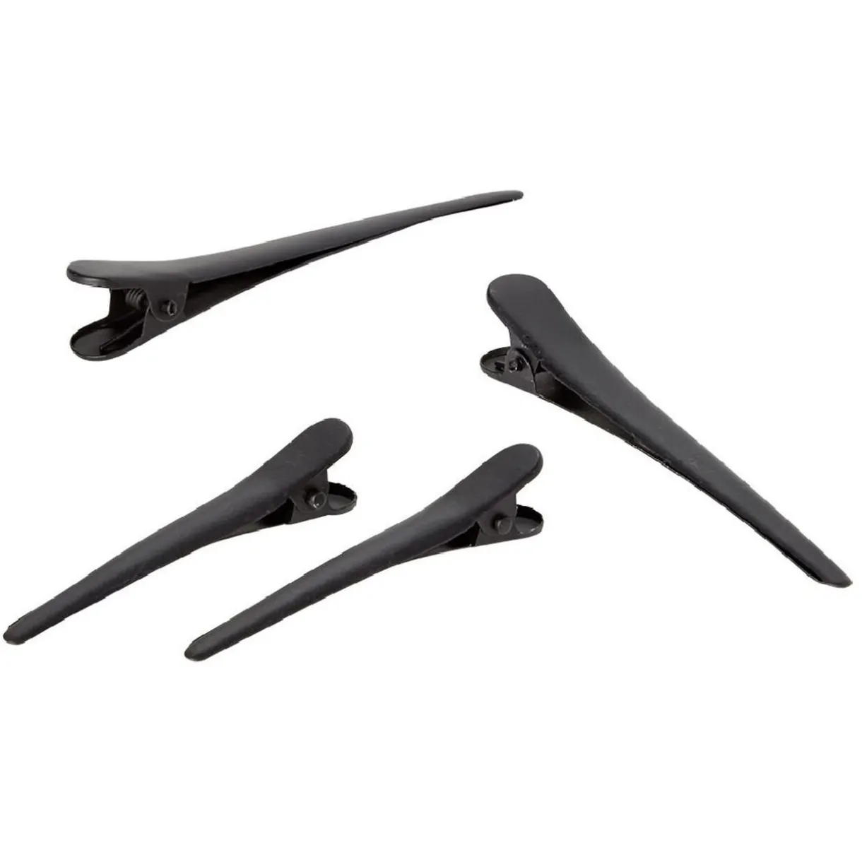 Lot de 4 pinces crocodiles plates en plastique uni noir.