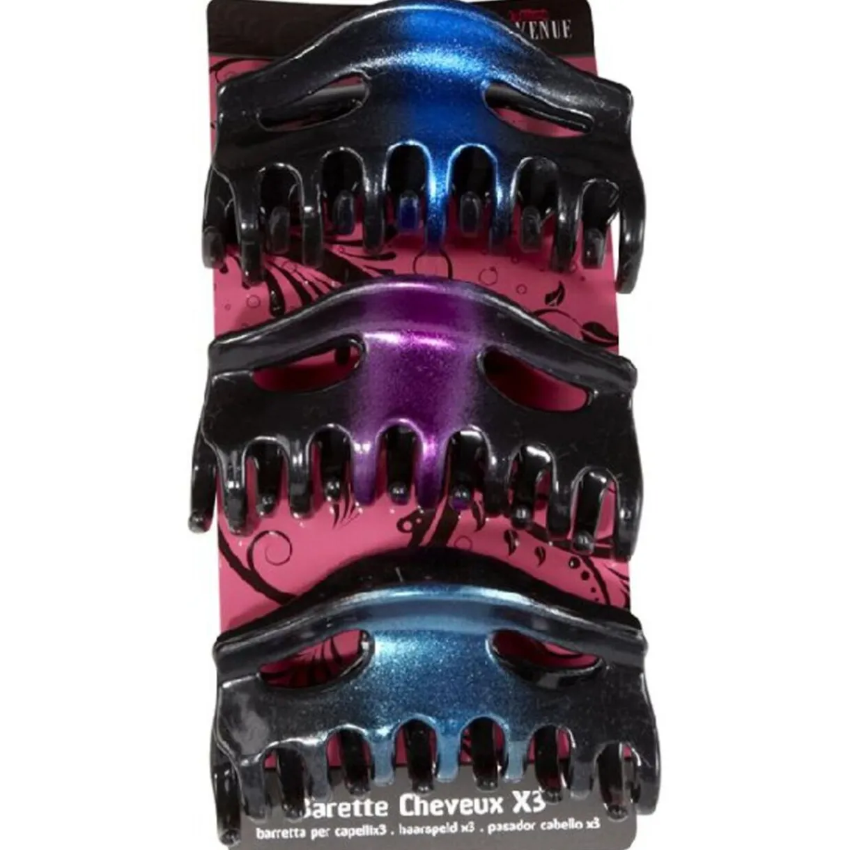 3 pinces à cheveux de dim. 9x4x5 cm, plastique.