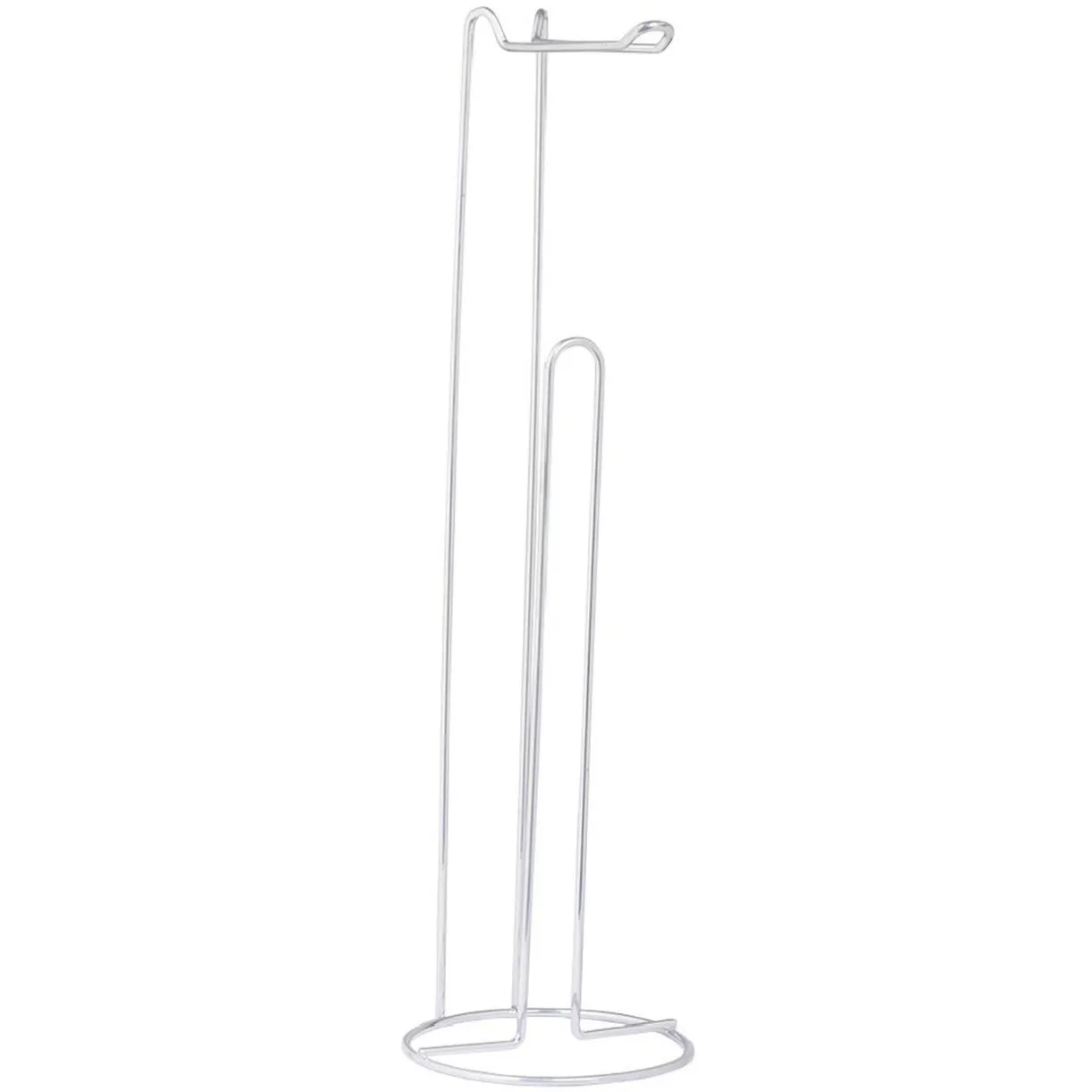 Dérouleur à papier toilette avec réserve pour rouleaux en métal gris.