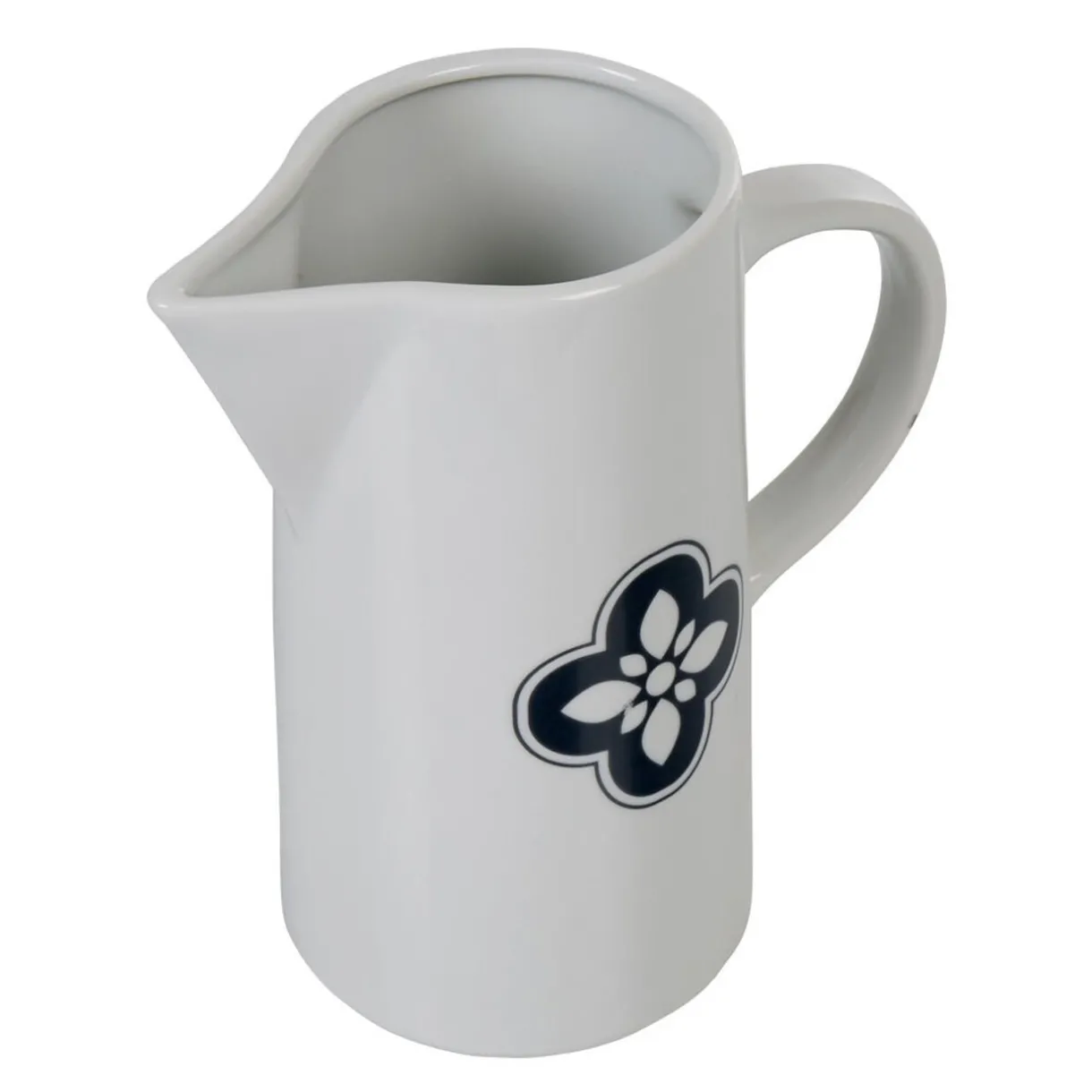 Mettez en valeur vos boissons avec ce pichet blanc aux lignes vintage et joliment décoré d’un motif fleuri stylisé, gris.