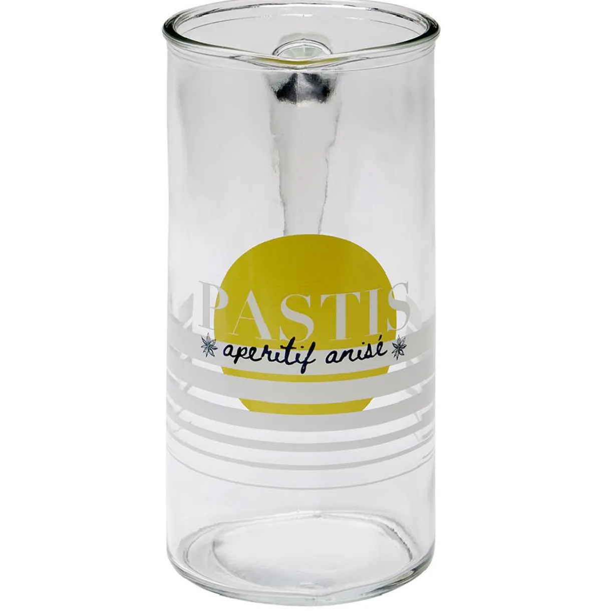 Pichet en verre style broc transparent avec inscription »PASTIS apéritif anisé ».