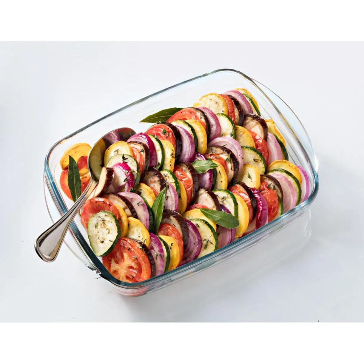 Ce plat à four rectangulaire en verre transparent vous sera très utile pour la cuisson des plats pour toute la famille.