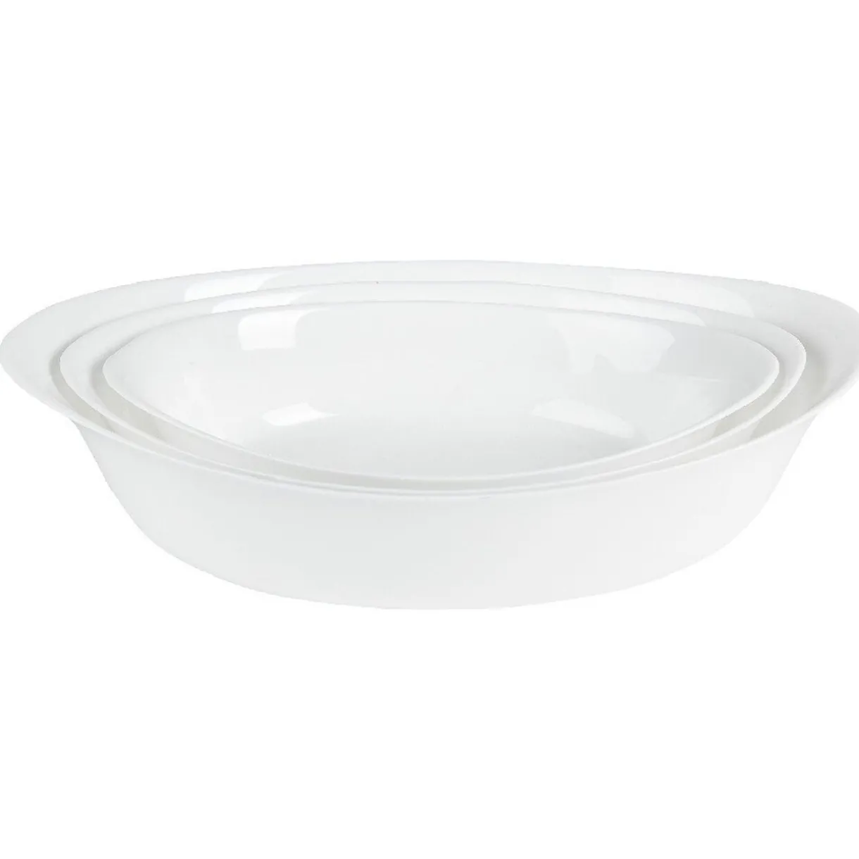 Cuisinez pour vous, pour 2, pour 4 ou pour 6 avec ces 3 plats ovale en verre léger et résistant de dimensions différentes pour faire plaisir à tous les gourmands.