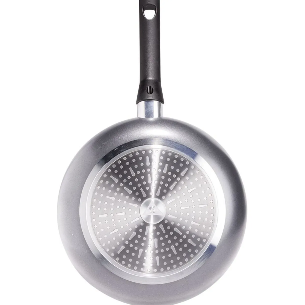 Poêle en aluminium avec revêtement anti-adhérent Teflon qui n’accroche pas les aliments. Elle permet d’utiliser moins de matières grasses pour une cuisson plus saine!