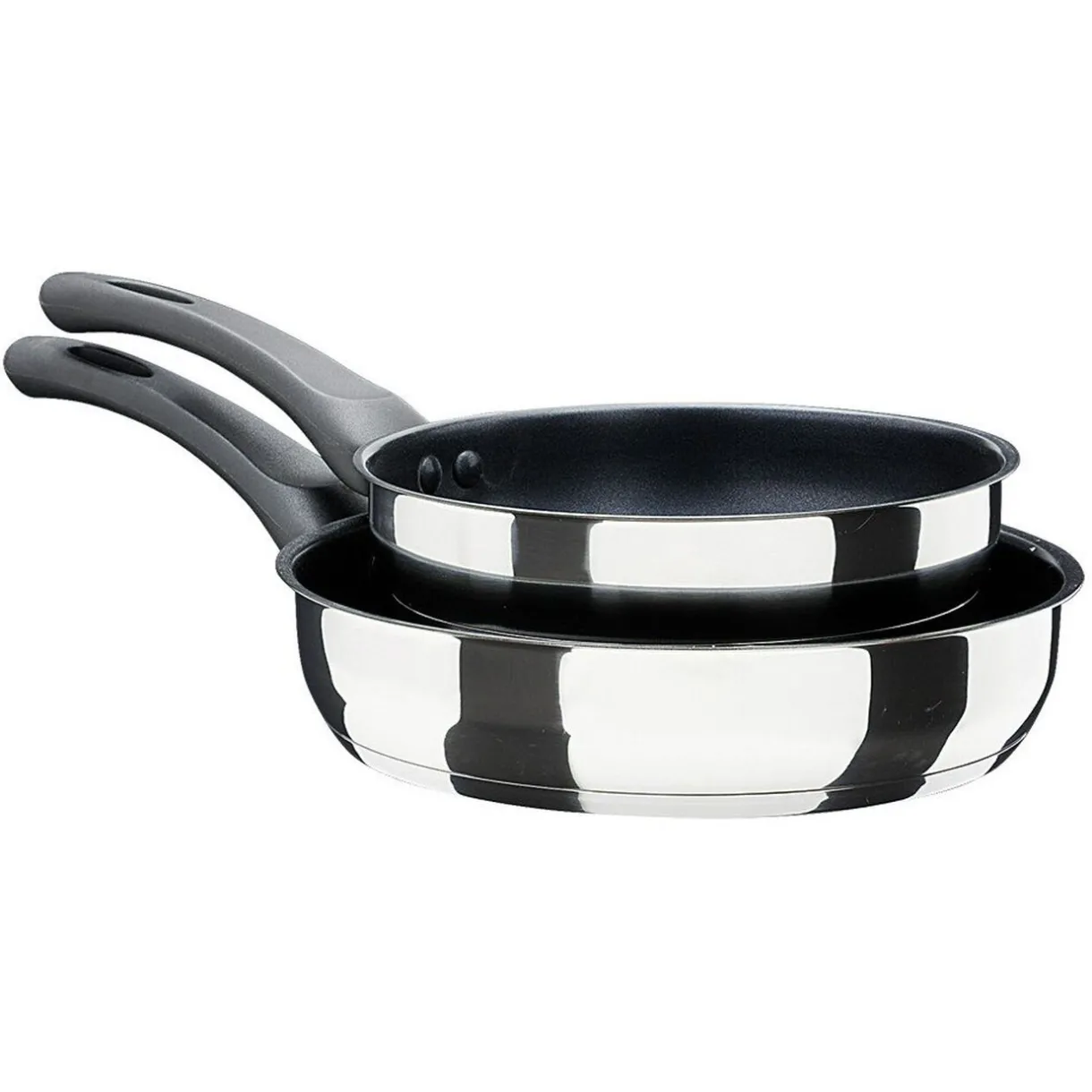 Lot de 2 poêles en acier inoxydable pour une excellente diffusion et répartition de la chaleur.