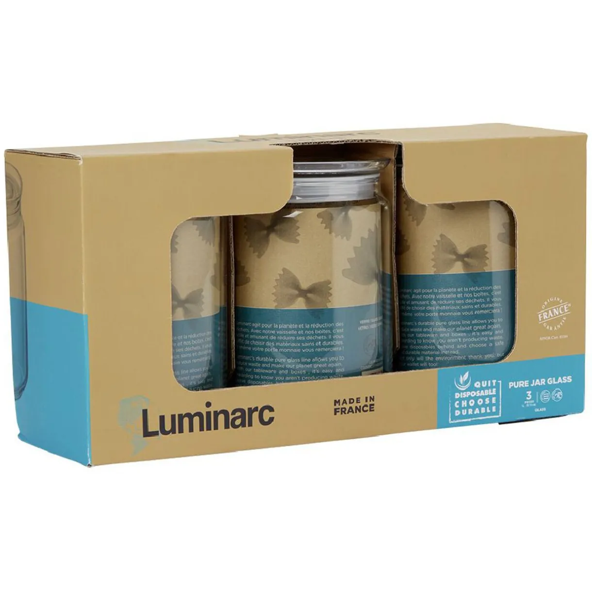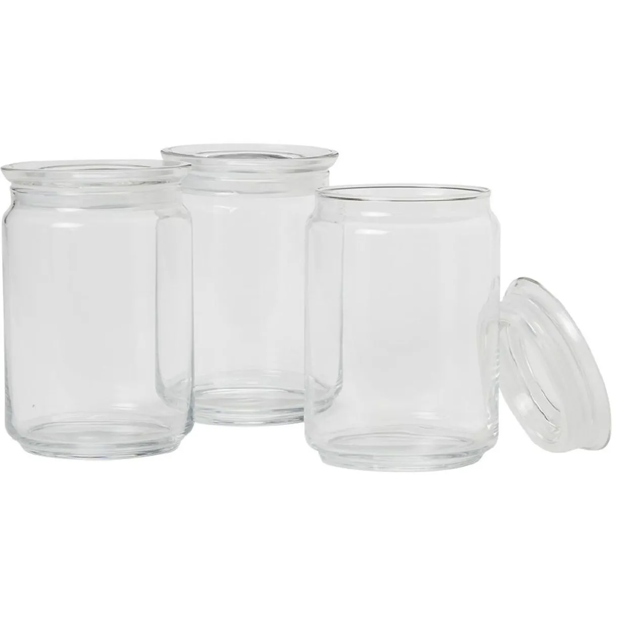 Lot de 3 pots en verre avec couvercle, idéal pour conserver vos aliments plus efficacement.