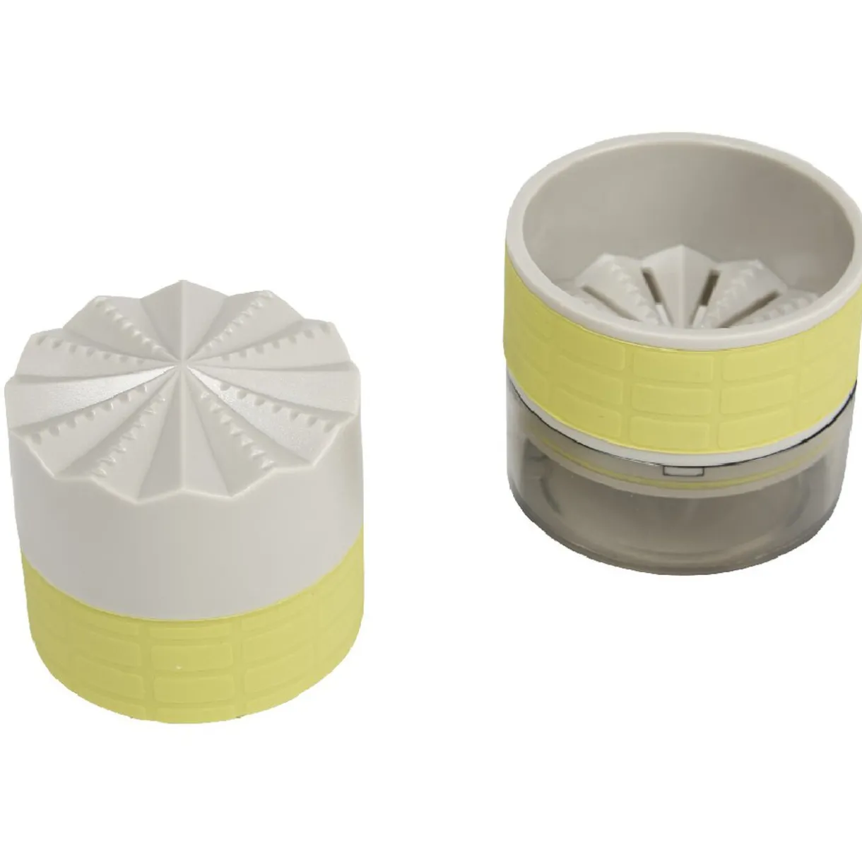 Presse ail en plastique inox avec compartiment. Coloris: gris et vert.