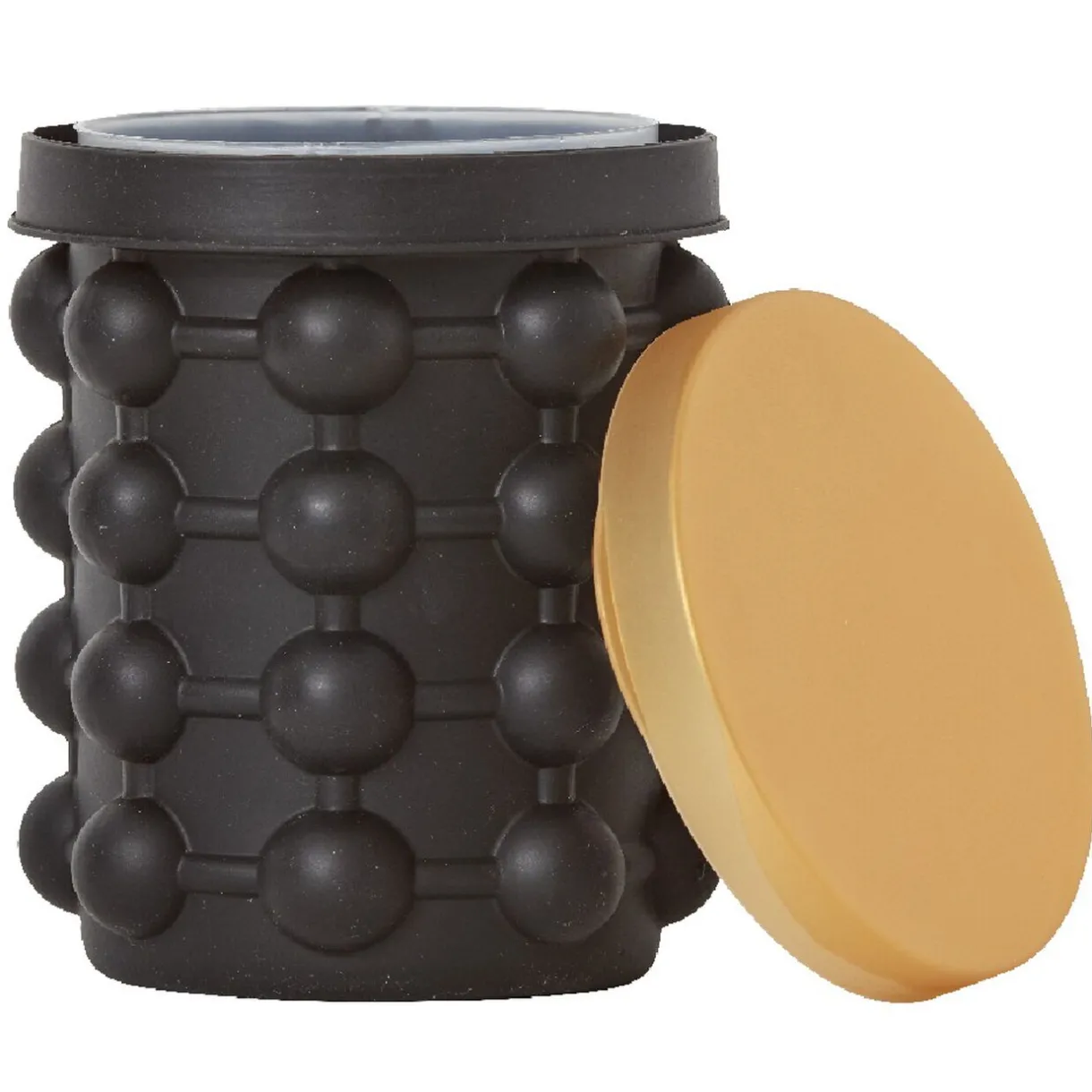 Ce rafraîchisseur 2 en 1 noir et doré vous permet à la fois d’y entreposer votre bouteille et la garder au frais mais il vous permet aussi de faire des glaçons en plus de leur facilité à démouler. Mettez de l’eau entre le rafraîchisseur et le compartiment intérieur, puis placez-le dans votre congélateur.