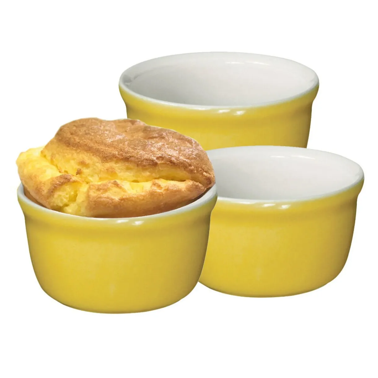 3 ramequins ronds de couleur blanc.