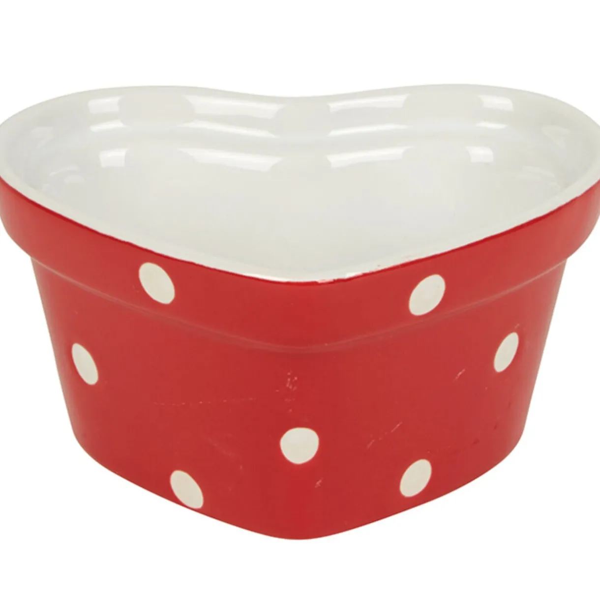 Ramequin coeur rouge à pois blancs, dim. 10,5×9,5xh.5,5 cm, céramique.