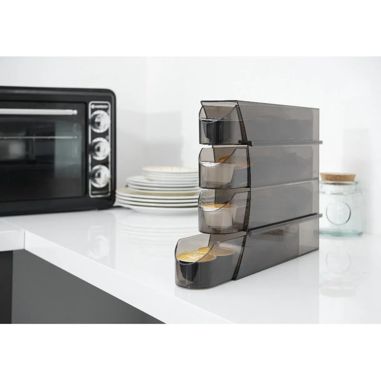 Range-capsules vertical ou horizontal pour 24 capsules, compatible tous types de dosettes rigides.