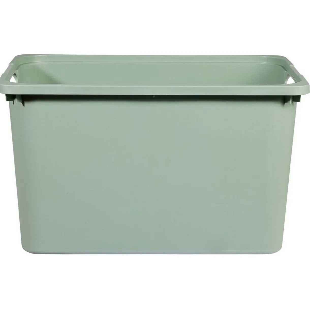 Idéal pour le rangement, ce bac en plastique vert trouvera facilement sa place dans votre buanderie ou dans une chambre.