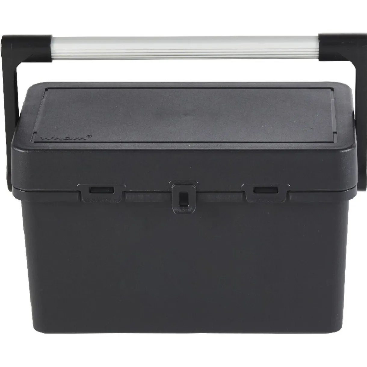 Résistante et légère, cette boîte de rangement rectangulaire en polypropylène noir est dotée d’une large anse de transport. Idéal pour ranger des outils ou votre matériel de loisirs créatifs.